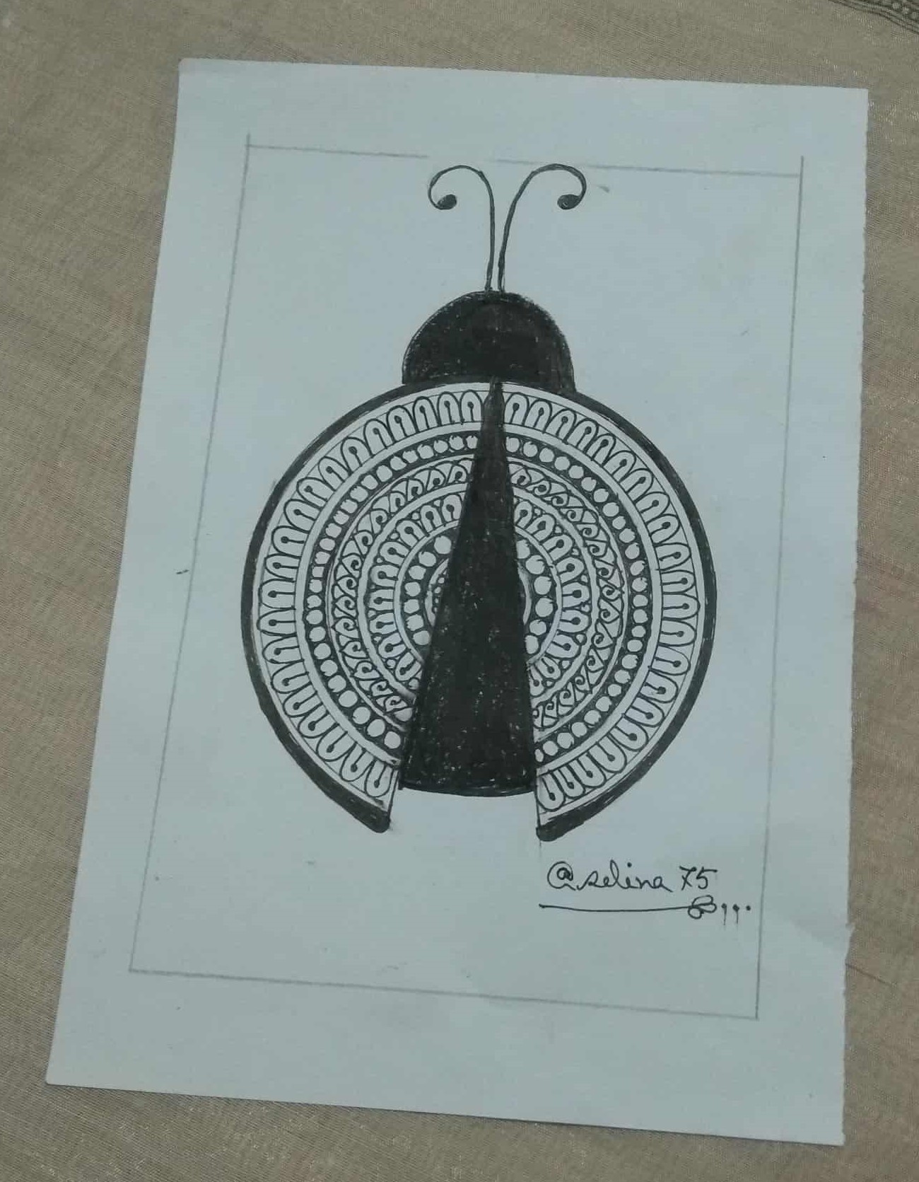 পেন্সিল কম্পাস দিয়ে একটি লেডী বাগ এঁকে নিয়েছি।