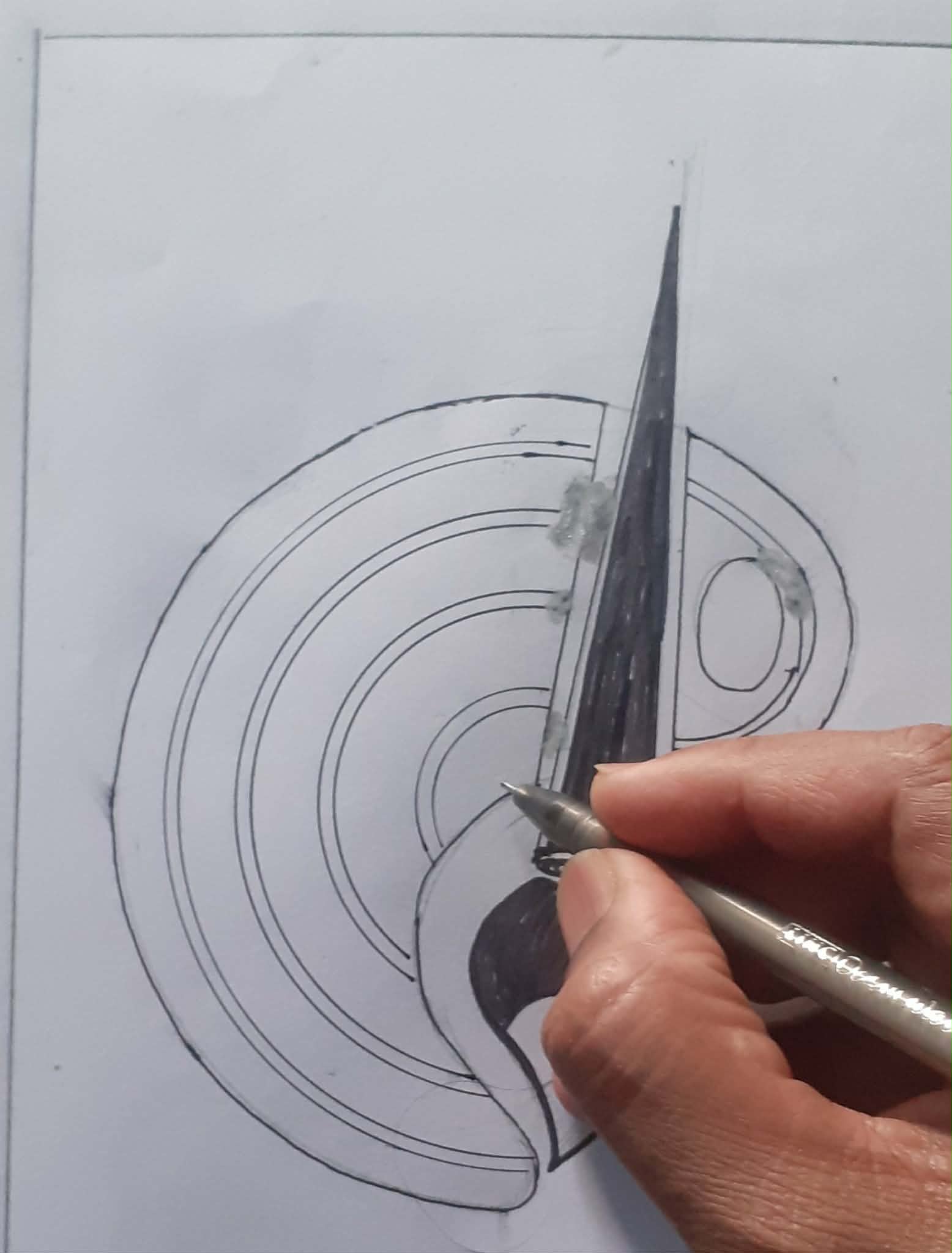 কলম দিয়ে বিভিন্ন ডিজাইন এঁকে অর্ধবৃত্তগুলো ভরাট করে নিয়েছি।