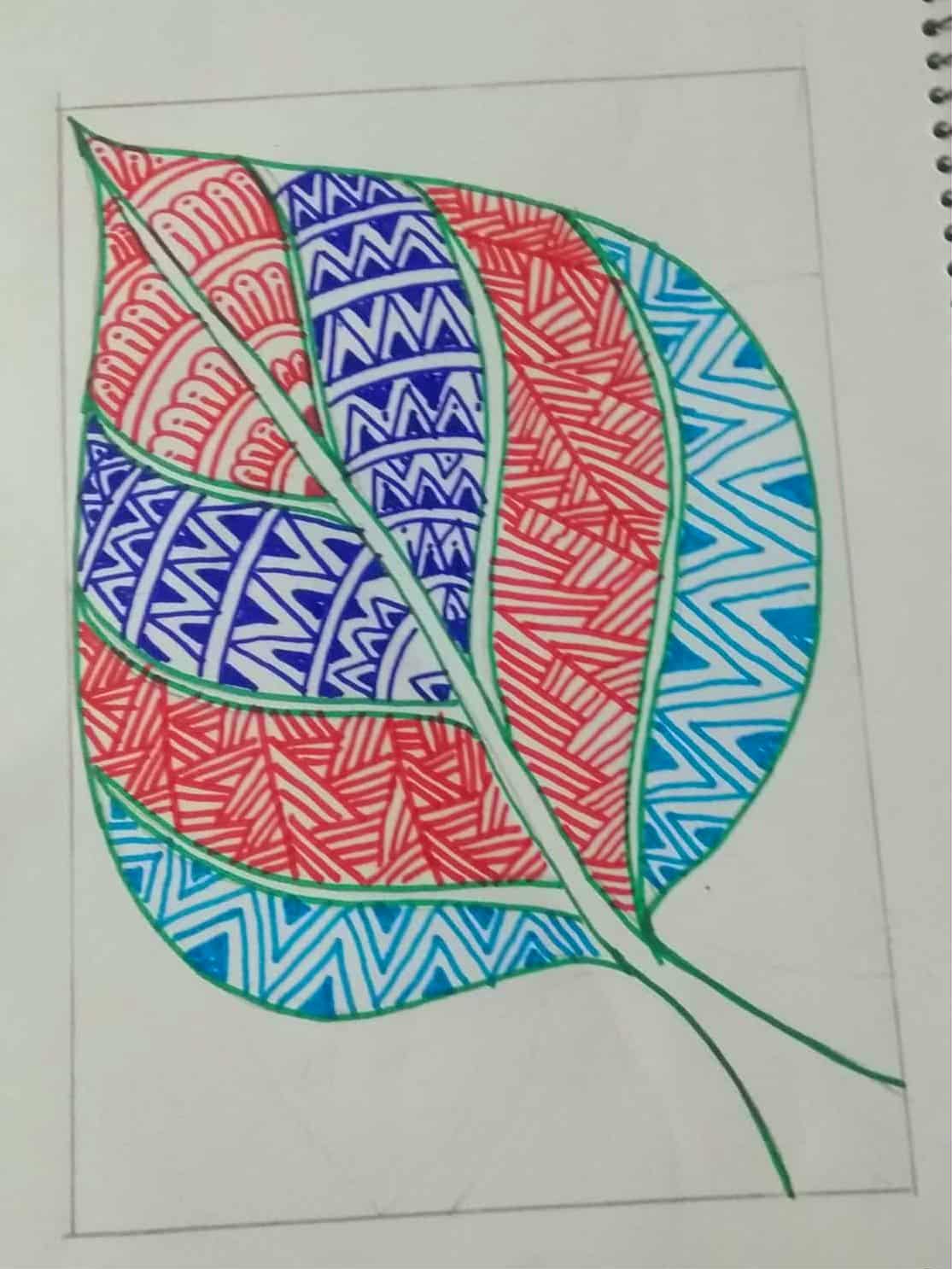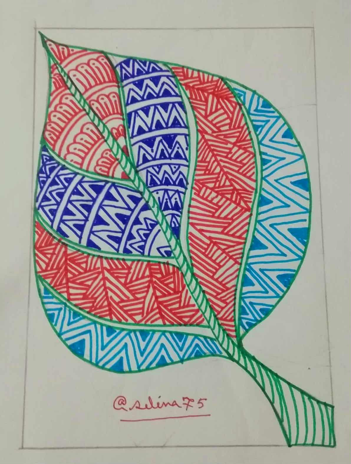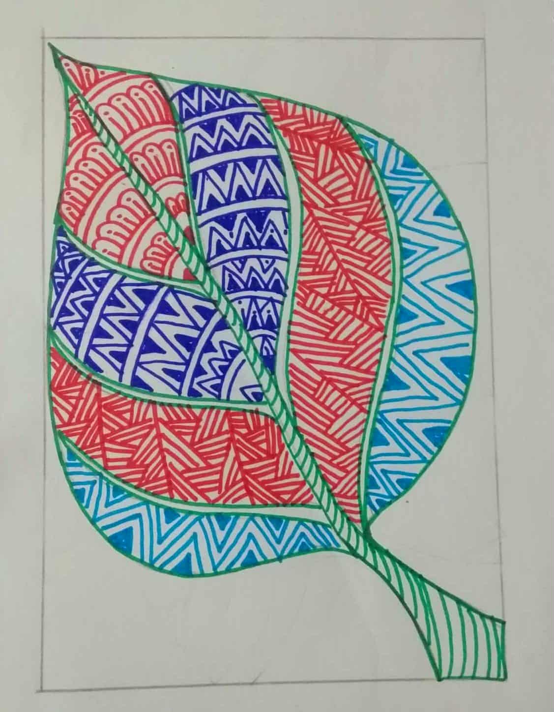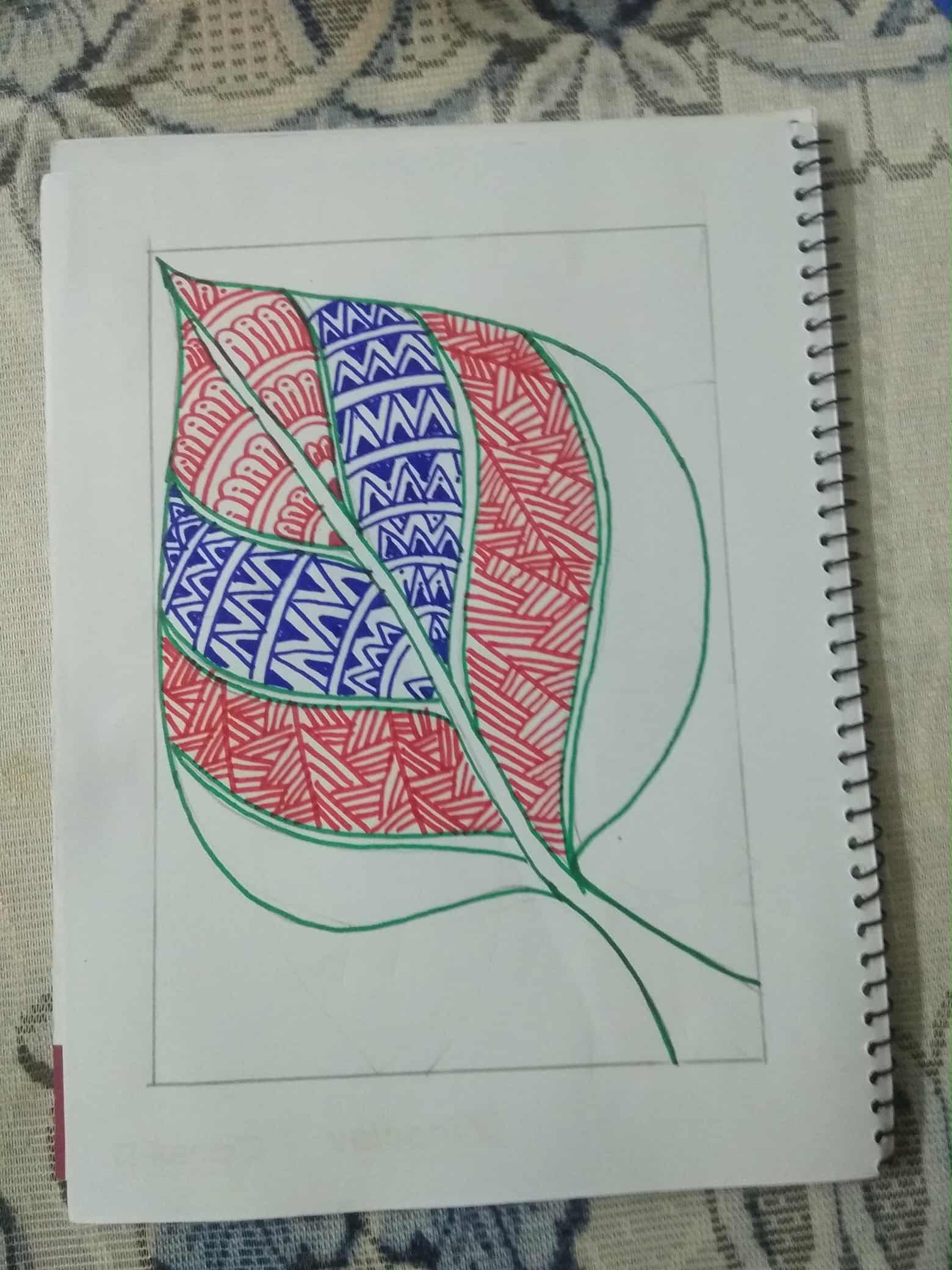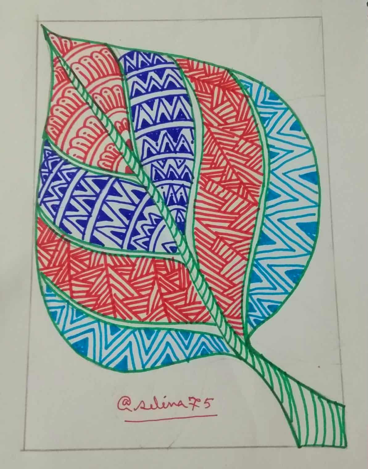 আকাশী রং এর সাইন পেন দিয়ে পাতার অন্য অংশ ভরাট করে নিয়েছি।