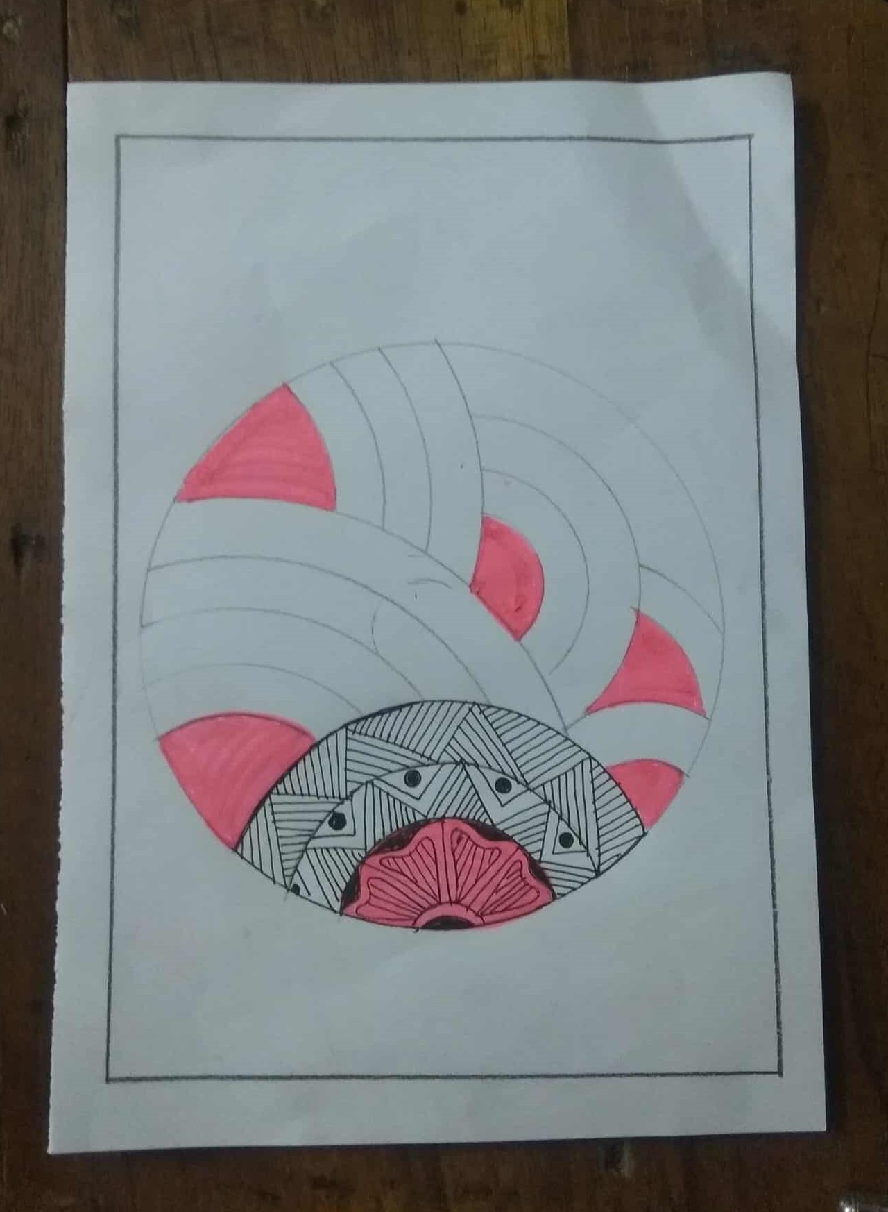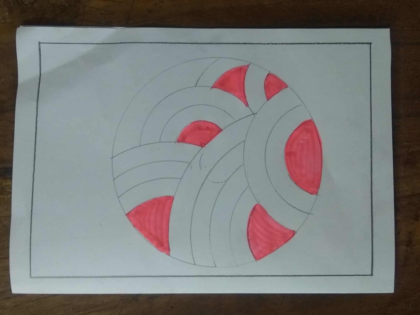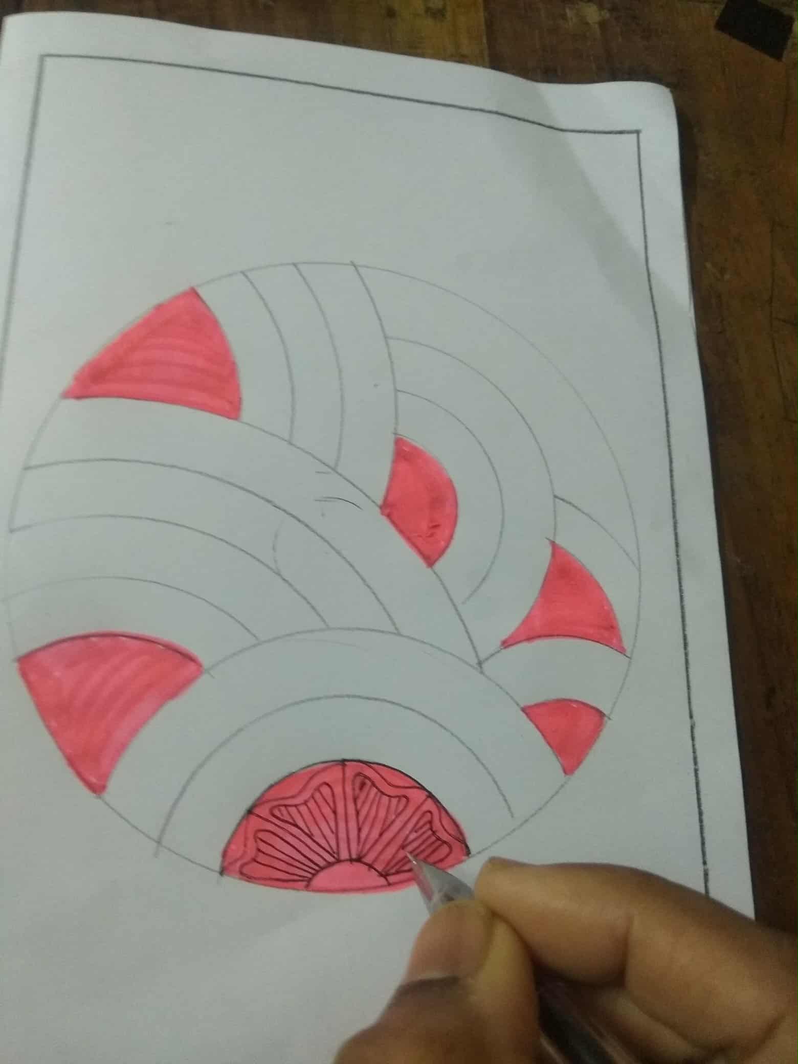 প্রতিটি অর্ধবৃত্তের কিছুটা অংশ গোলাপী রং করে নিয়েছি মার্কার পেন দিয়ে।