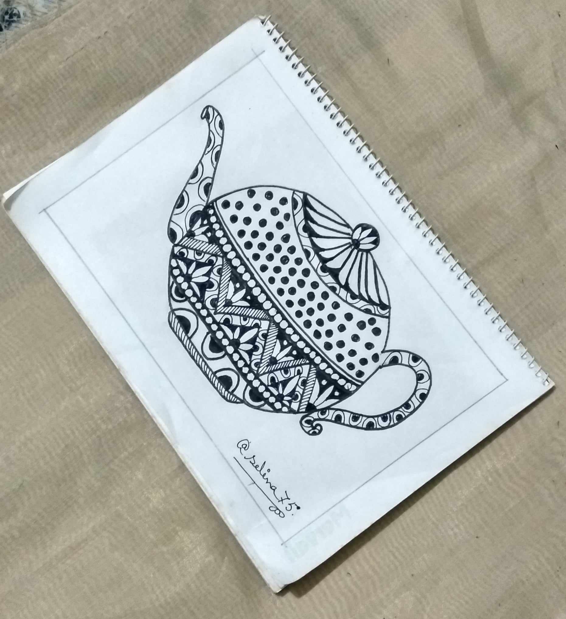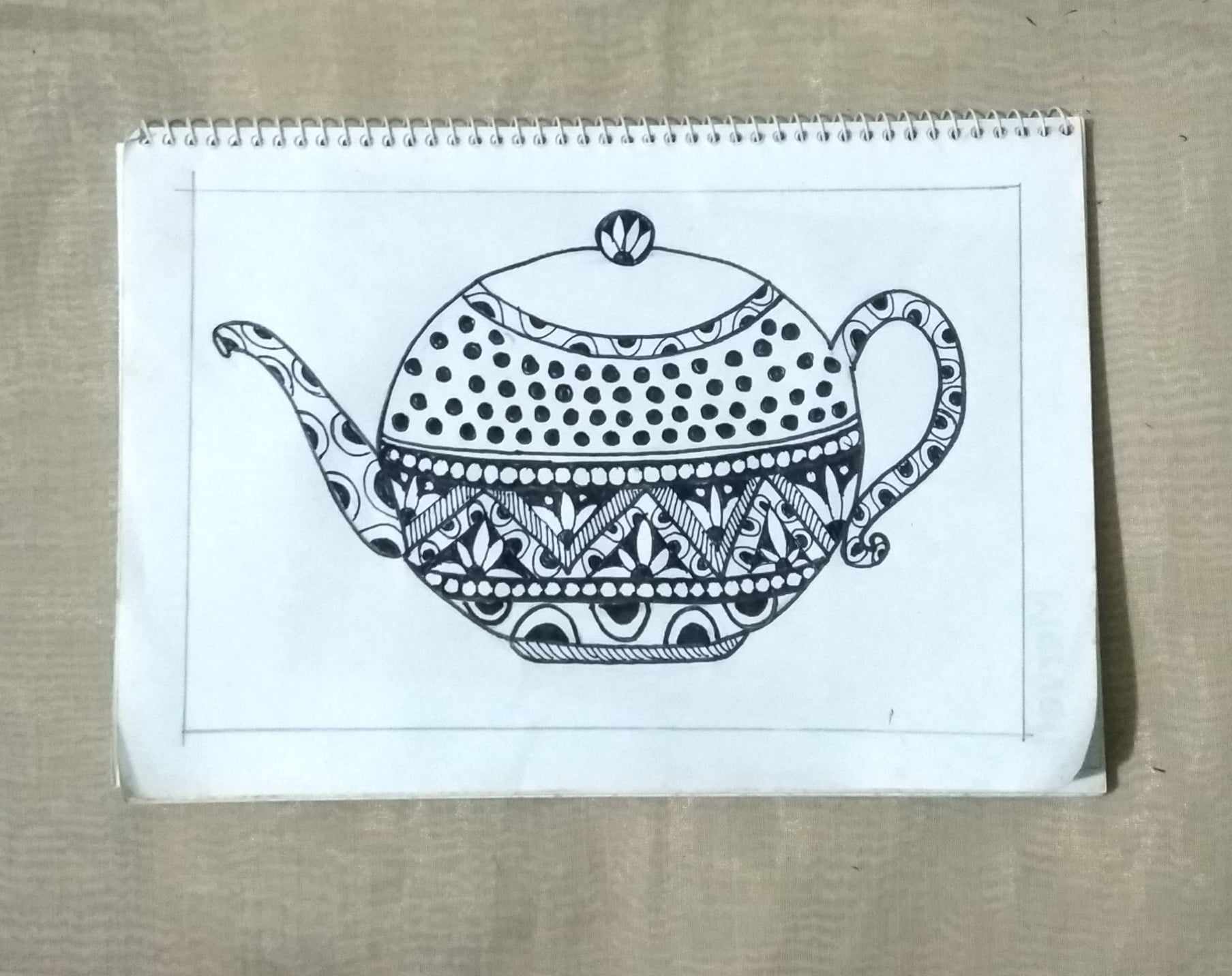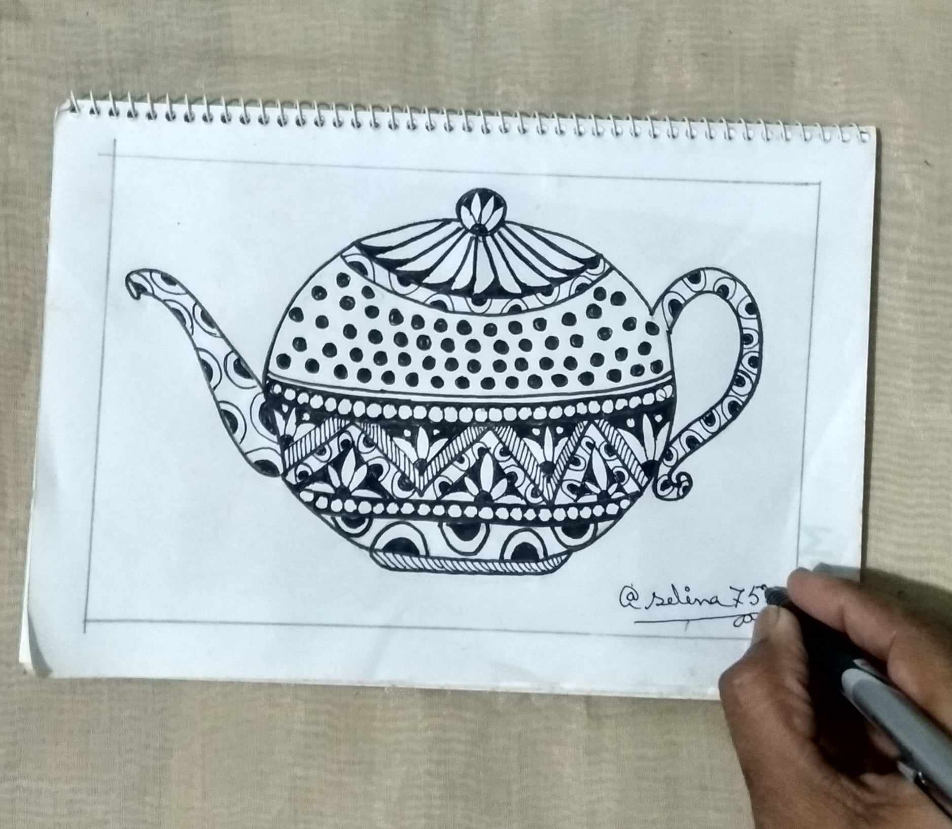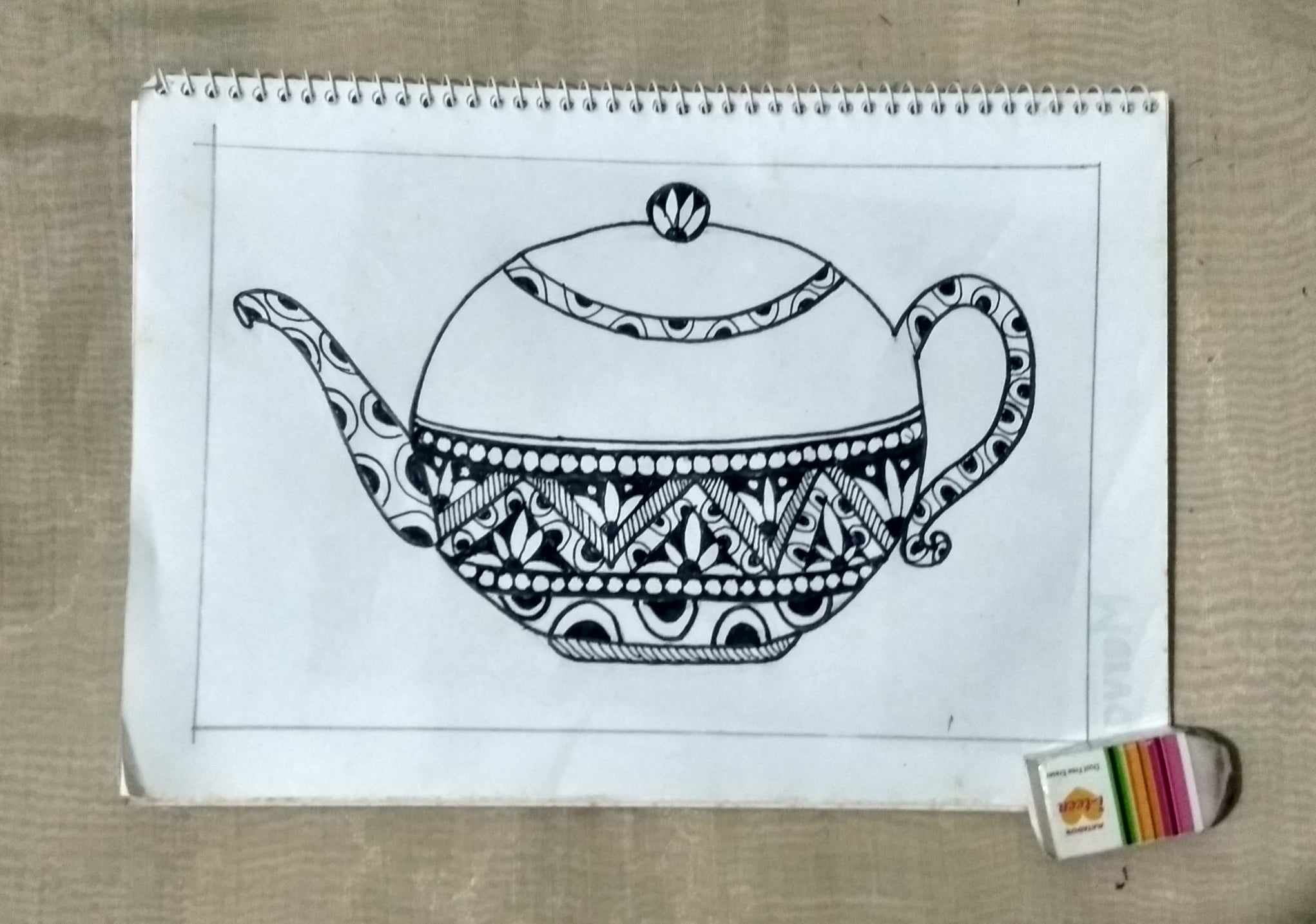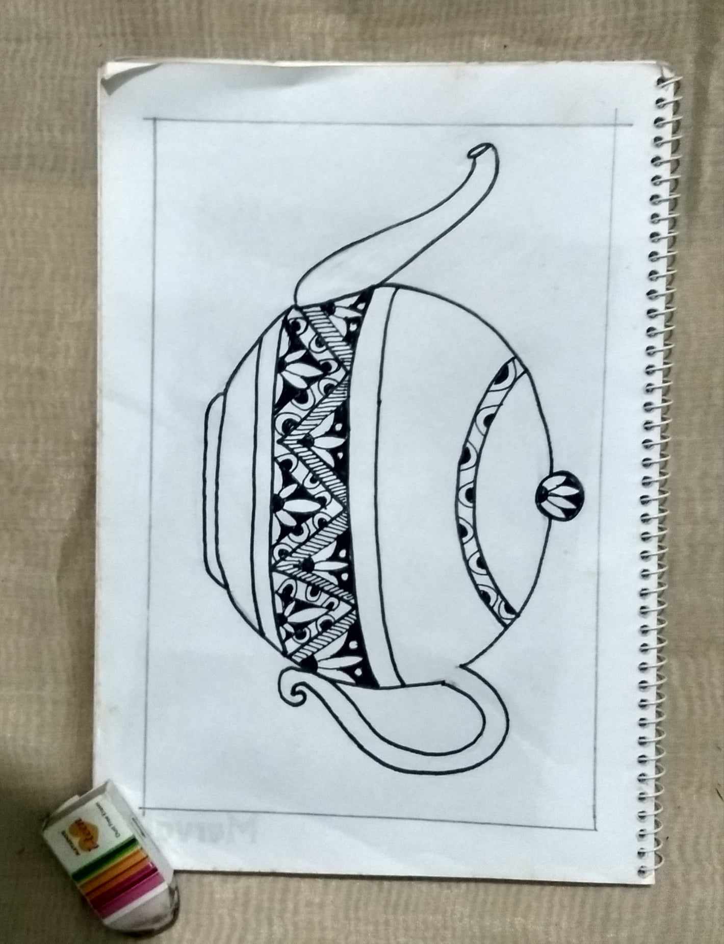 পেন্সিল দিয়ে একটি টি পট এঁকে নিয়েছি। টি পটটিতেই আজ ম্যান্ডালা আর্ট করবো।
