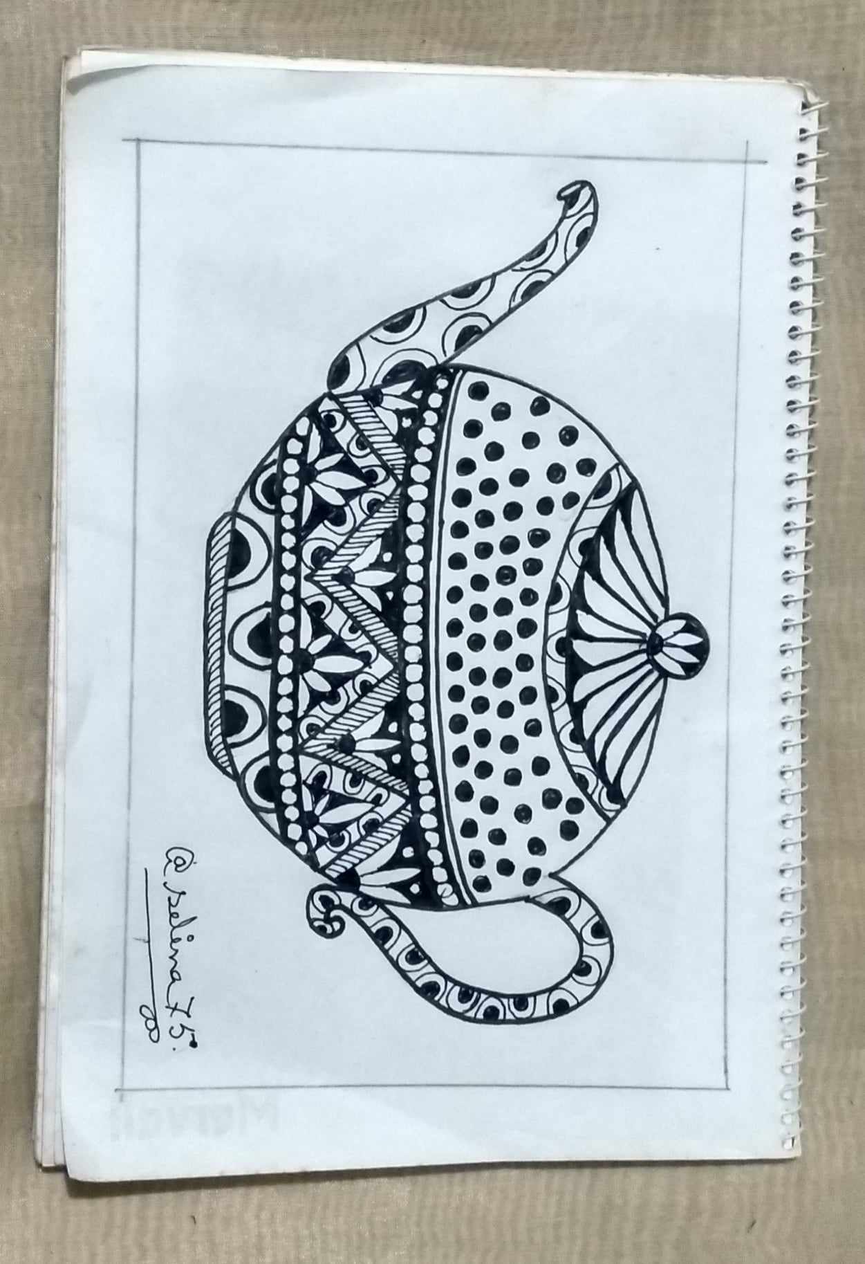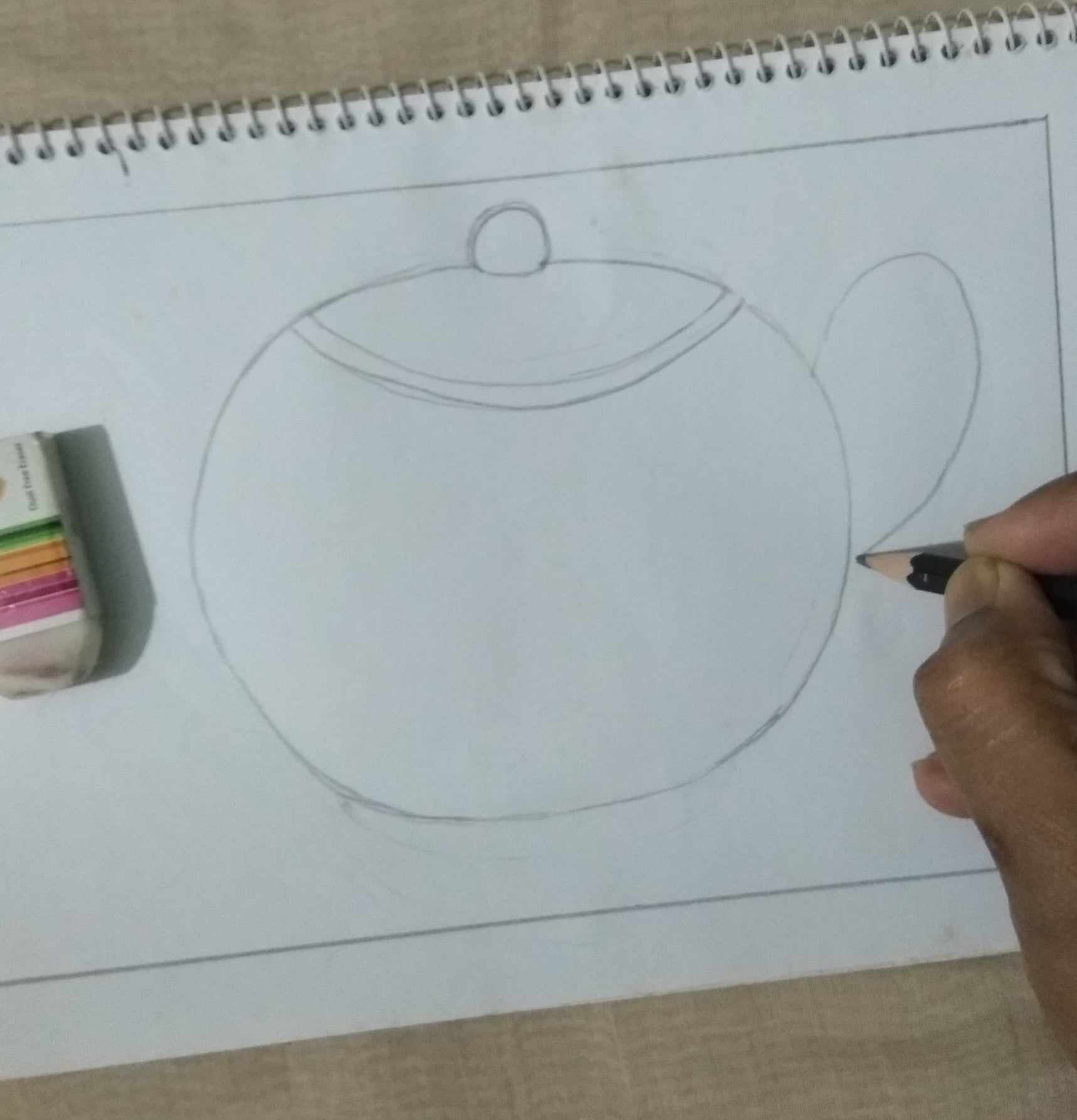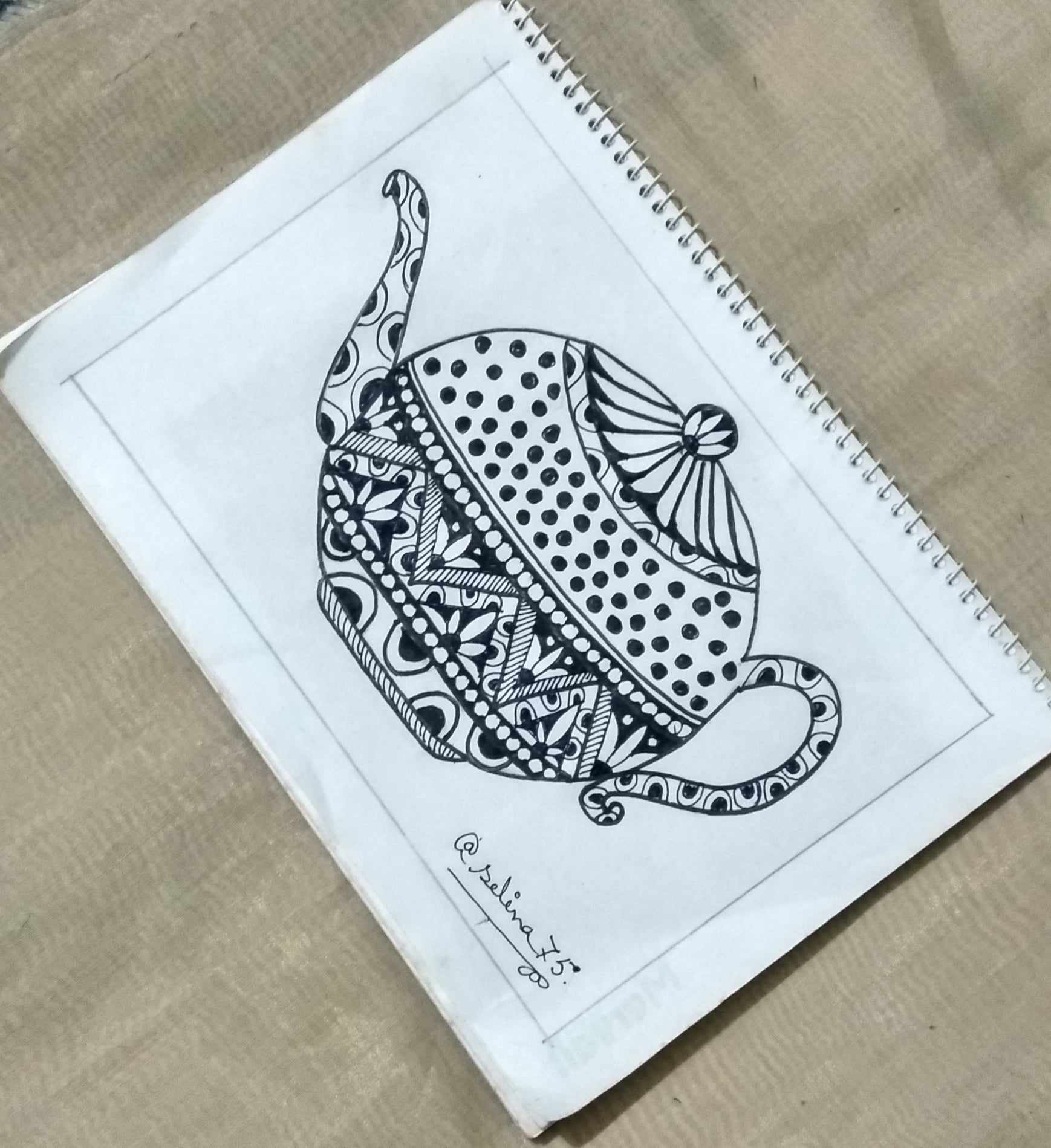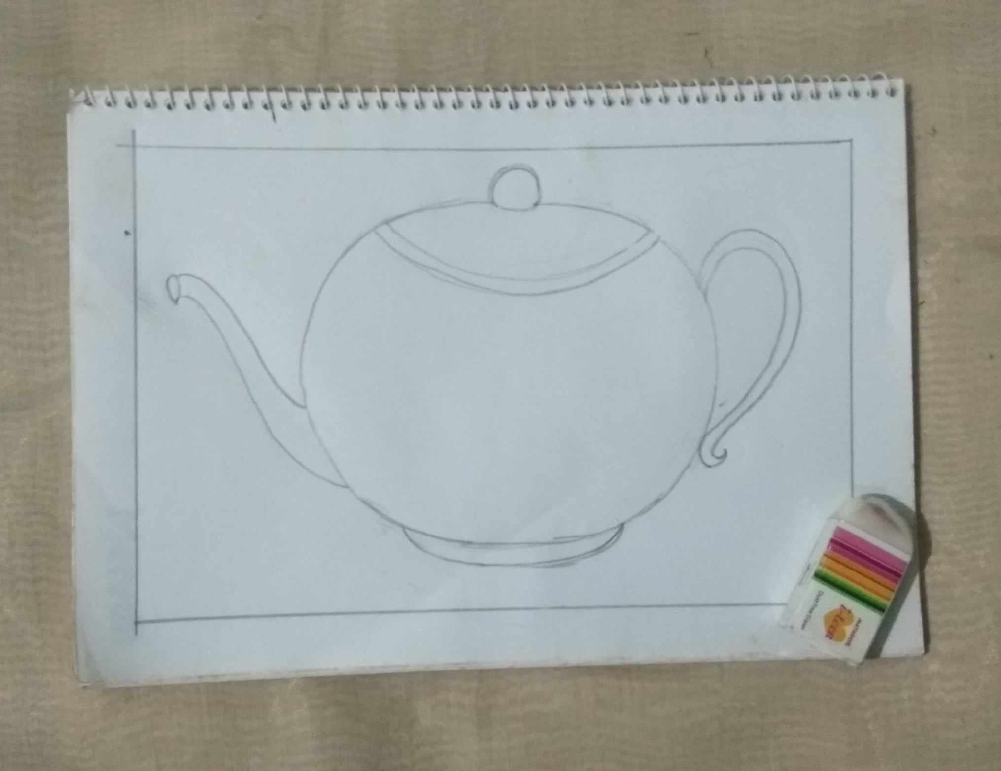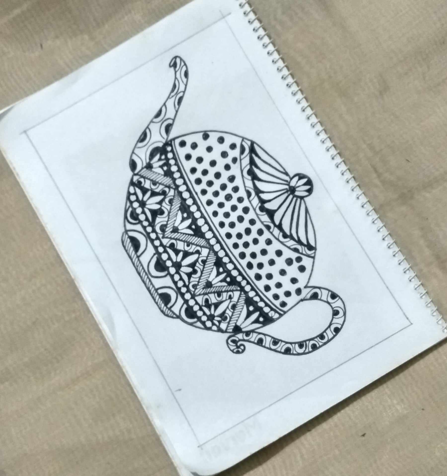 পেন্সিল দিয়ে একটি টি পট এঁকে নিয়েছি। টি পটটিতেই আজ ম্যান্ডালা আর্ট করবো।