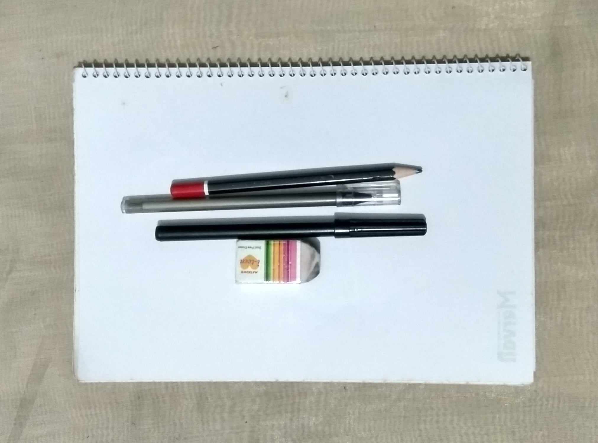 প্রথমে এক টুকরো সাদা কাগজের চারদিকে পেন্সিল দিয়ে দাগ দিয়ে নিয়েছি, ছবির মতো করে।