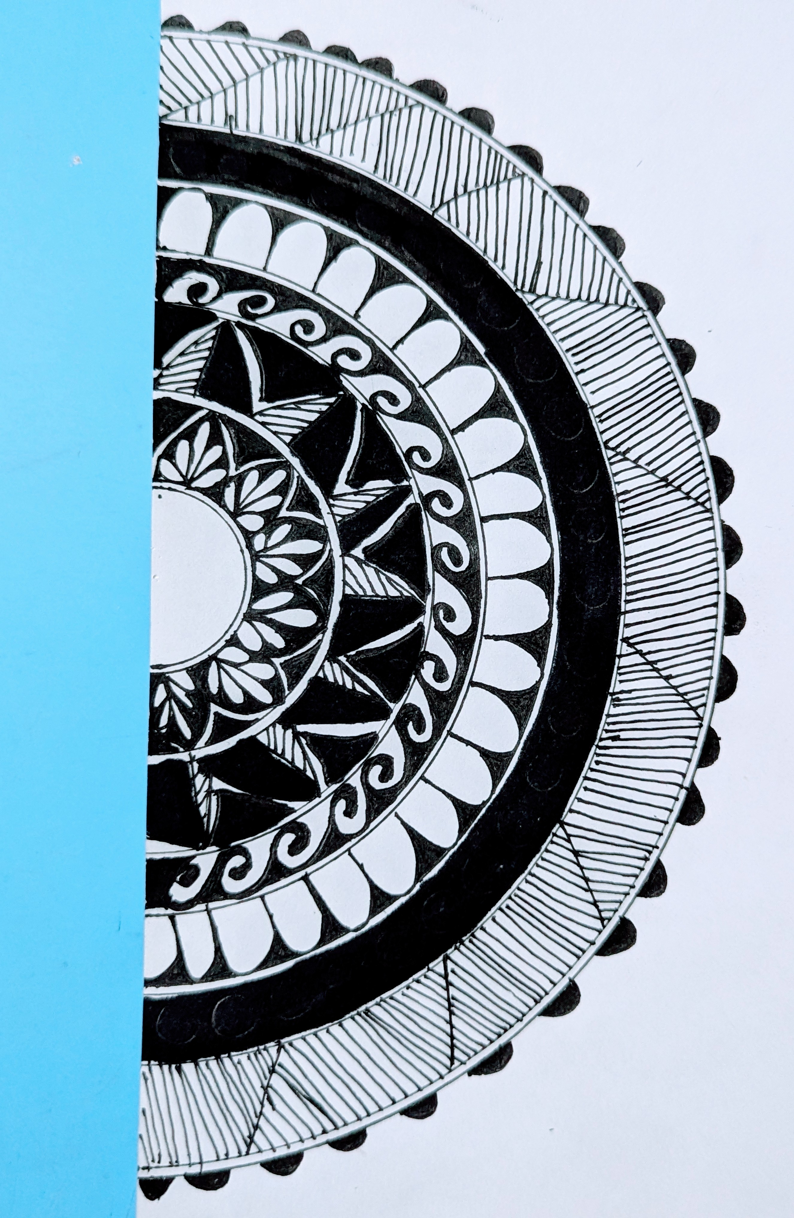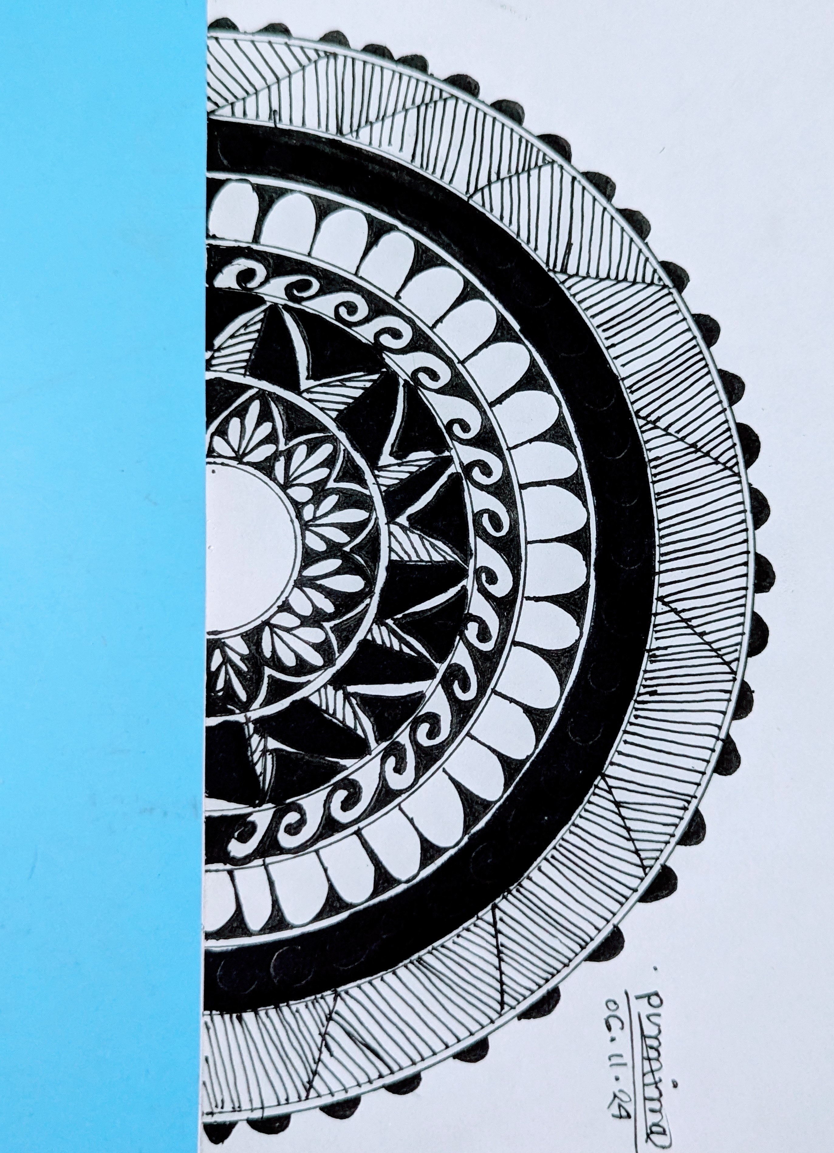 অর্ধ বৃত্তের মাঝে দারুণ ম্যান্ডেলা আর্ট করছেন আপনি। আপনার চমৎকার এই মেন্ডেলা আর্ট তৈরি করতে দেখে আমি মুগ্ধ হয়েছি। অনেক দক্ষতা সম্পন্ন এবং ধৈর্যের মধ্য দিয়ে তৈরি করেছেন। দেখতে হবে সুন্দর হয়েছে।