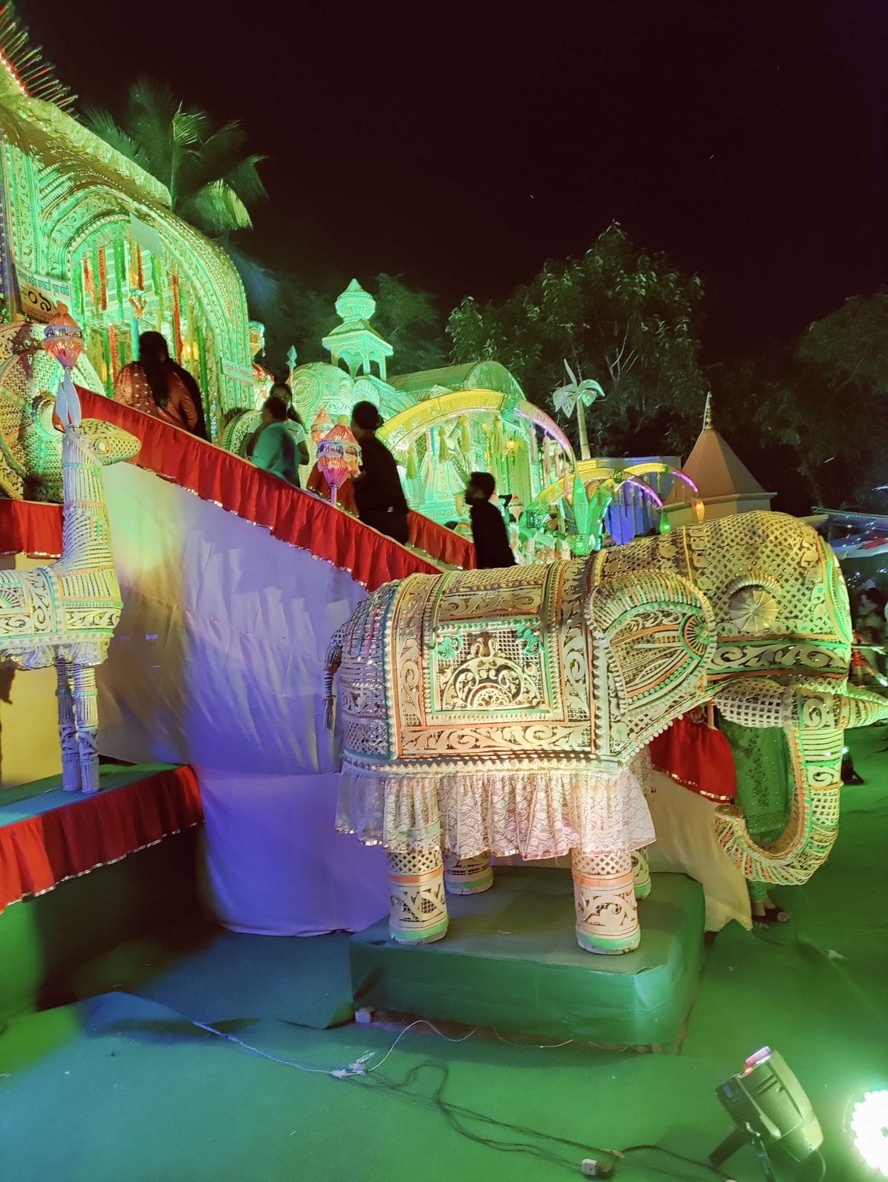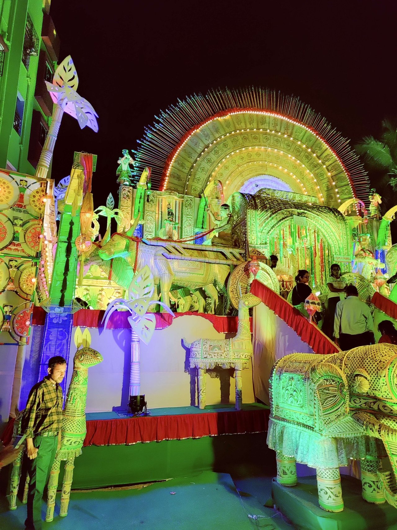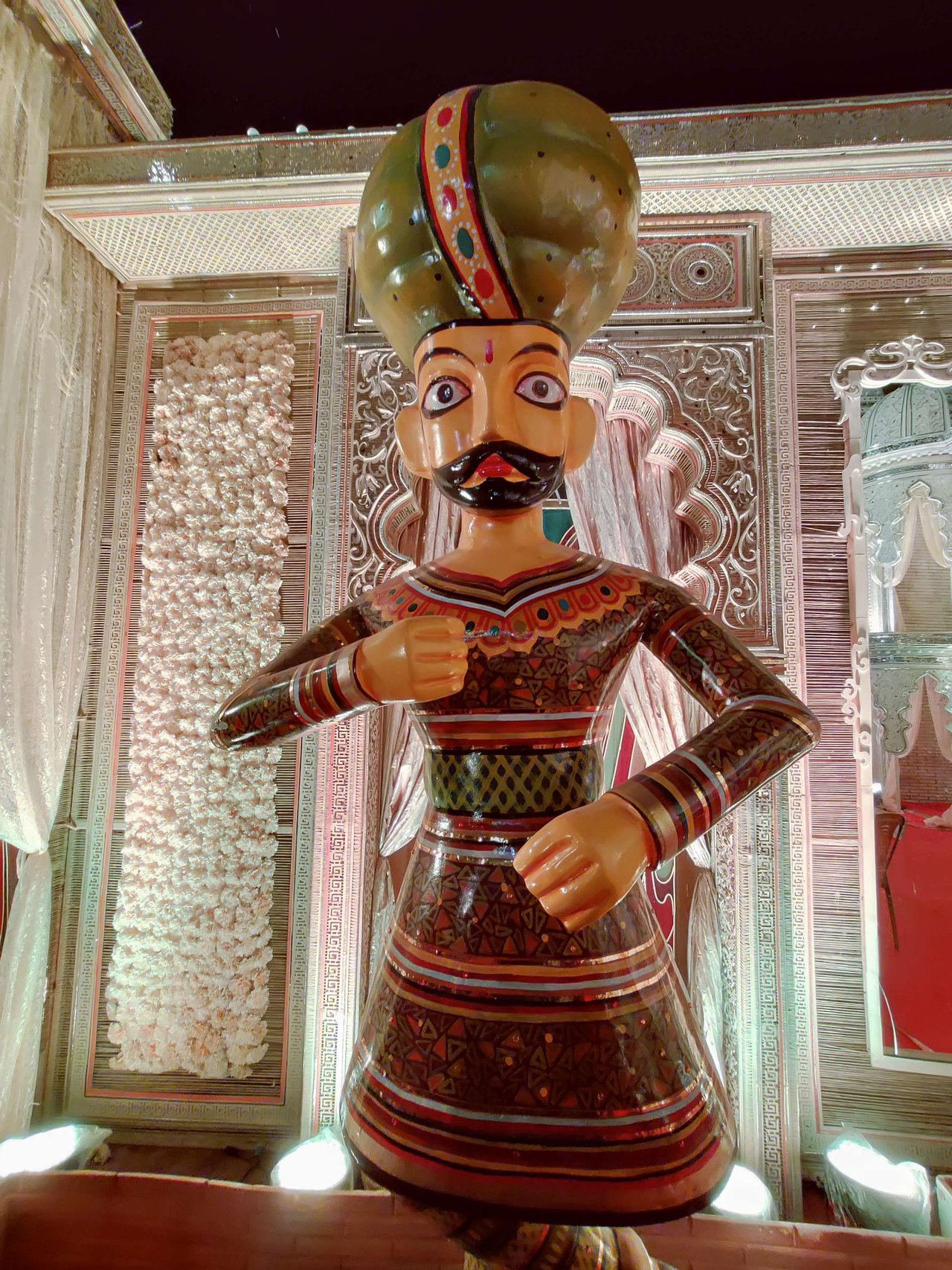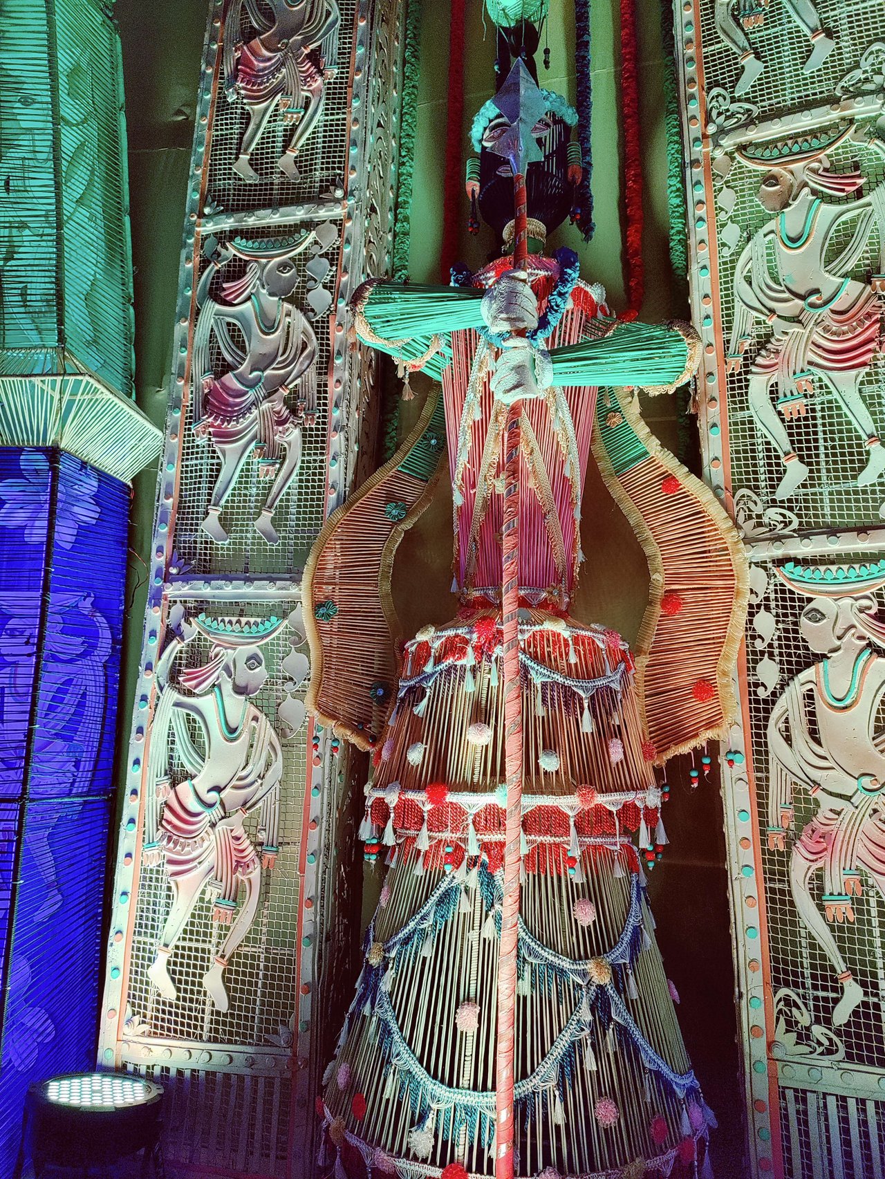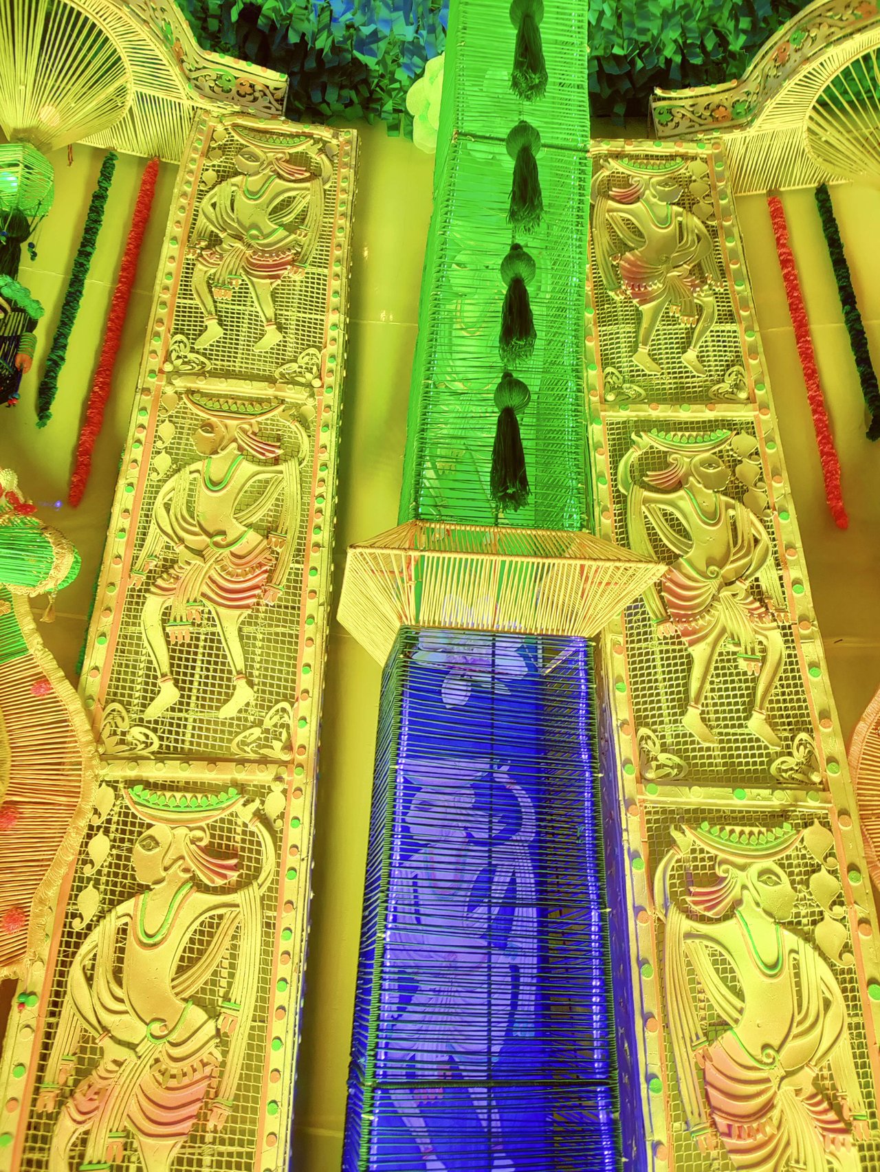প্যান্ডেলের অভ্যন্তরভাগও দারুনরূপে সুসজ্জিত । আর দেবী প্রতিমাটির উচ্চতা ছিল প্রায় তিন মানুষ । অপরূপা দেবী মূর্তি, দারুন সাজে সজ্জিতা ।