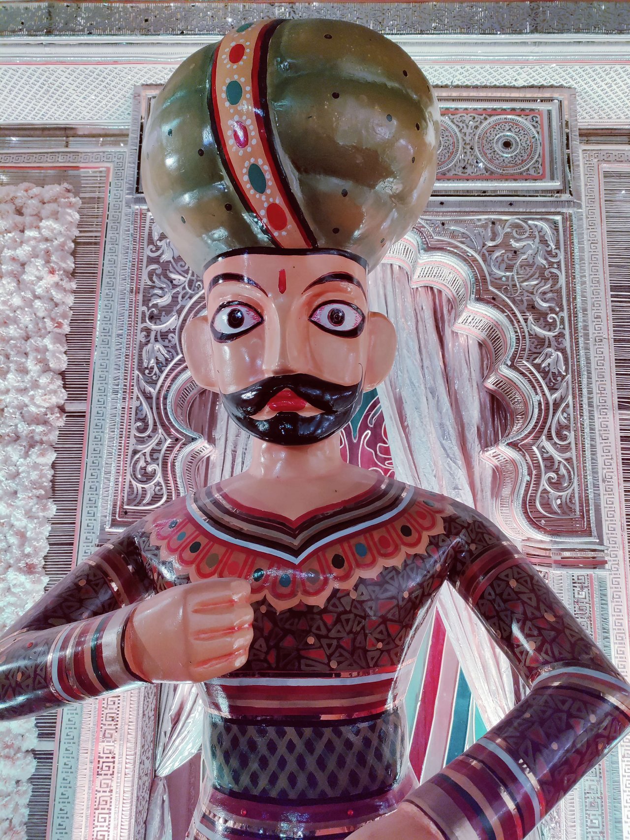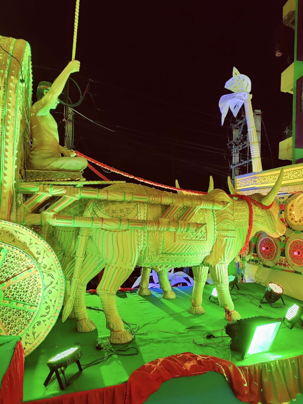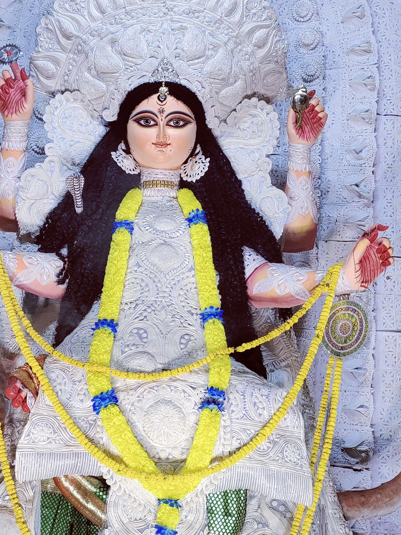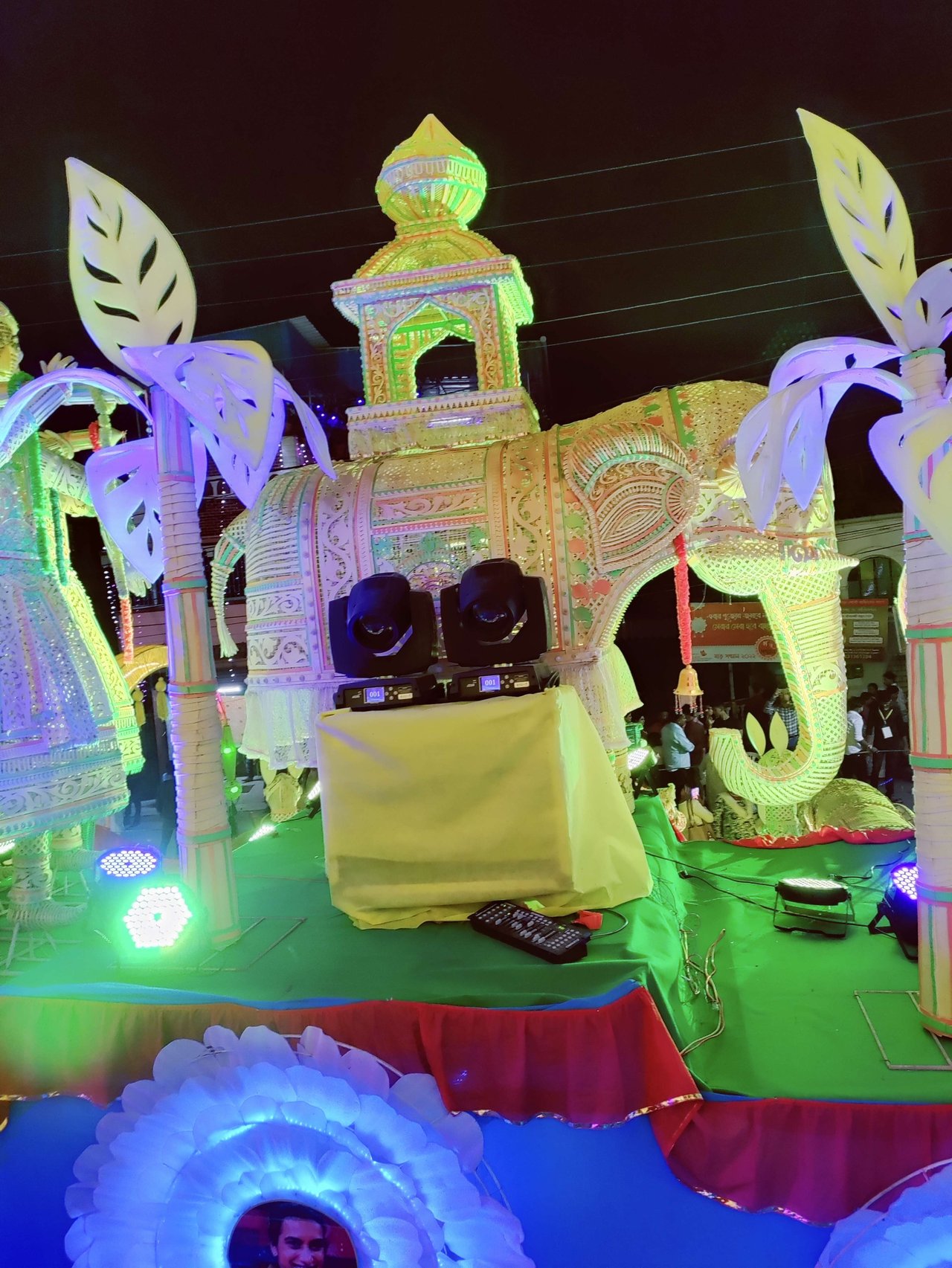 প্যান্ডেলের অভ্যন্তরভাগও দারুনরূপে সুসজ্জিত । আর দেবী প্রতিমাটির উচ্চতা ছিল প্রায় তিন মানুষ । অপরূপা দেবী মূর্তি, দারুন সাজে সজ্জিতা ।