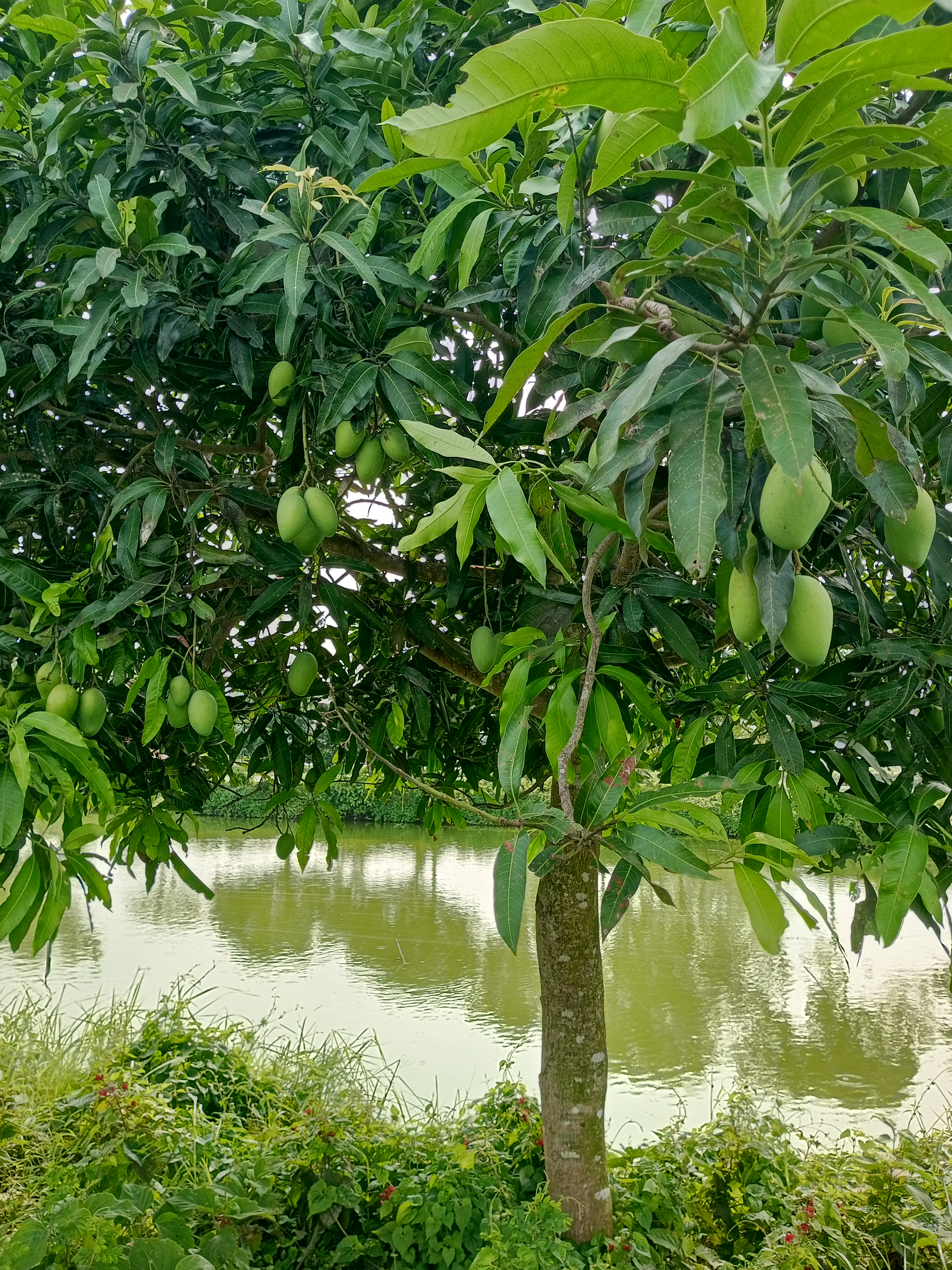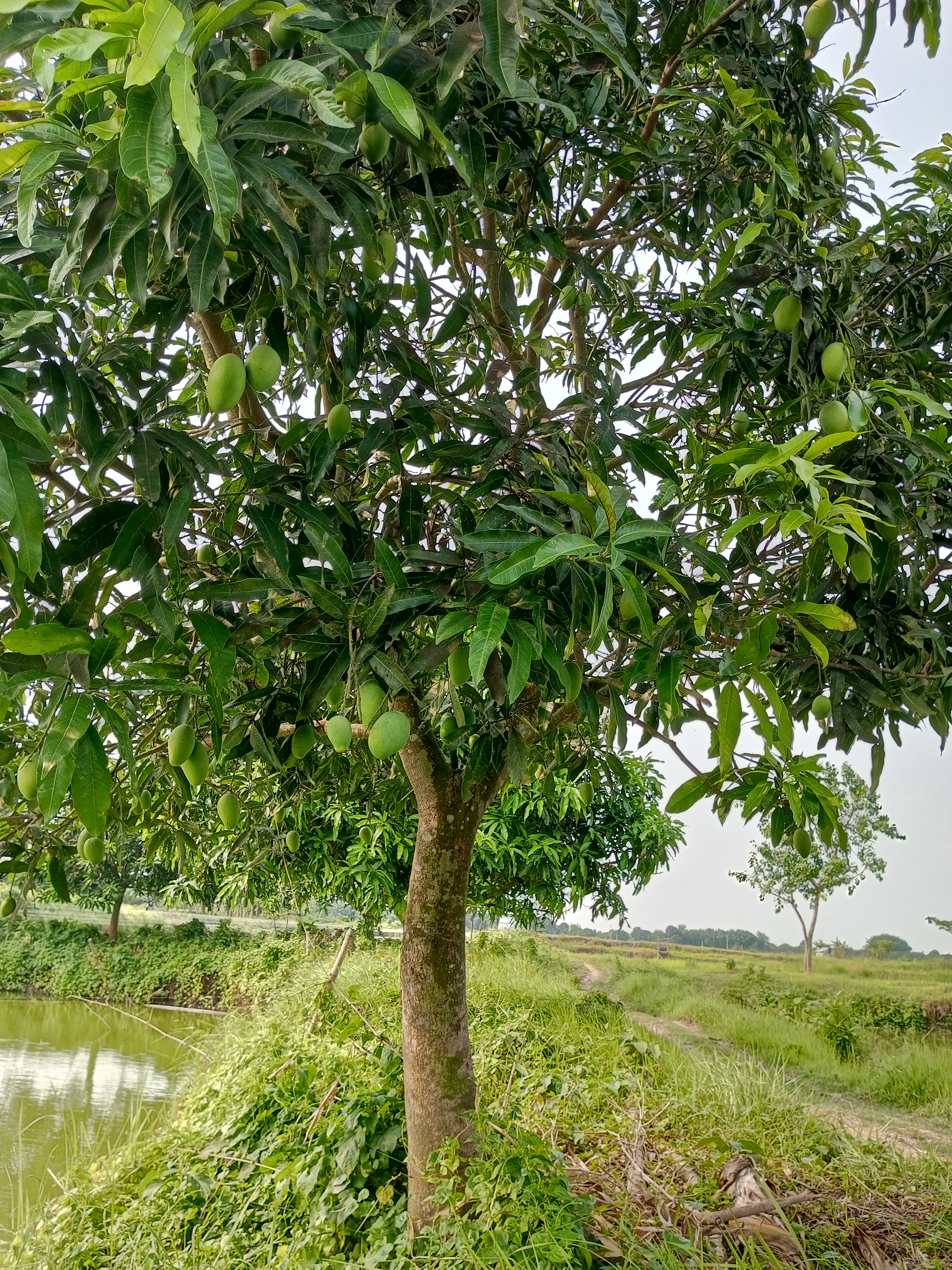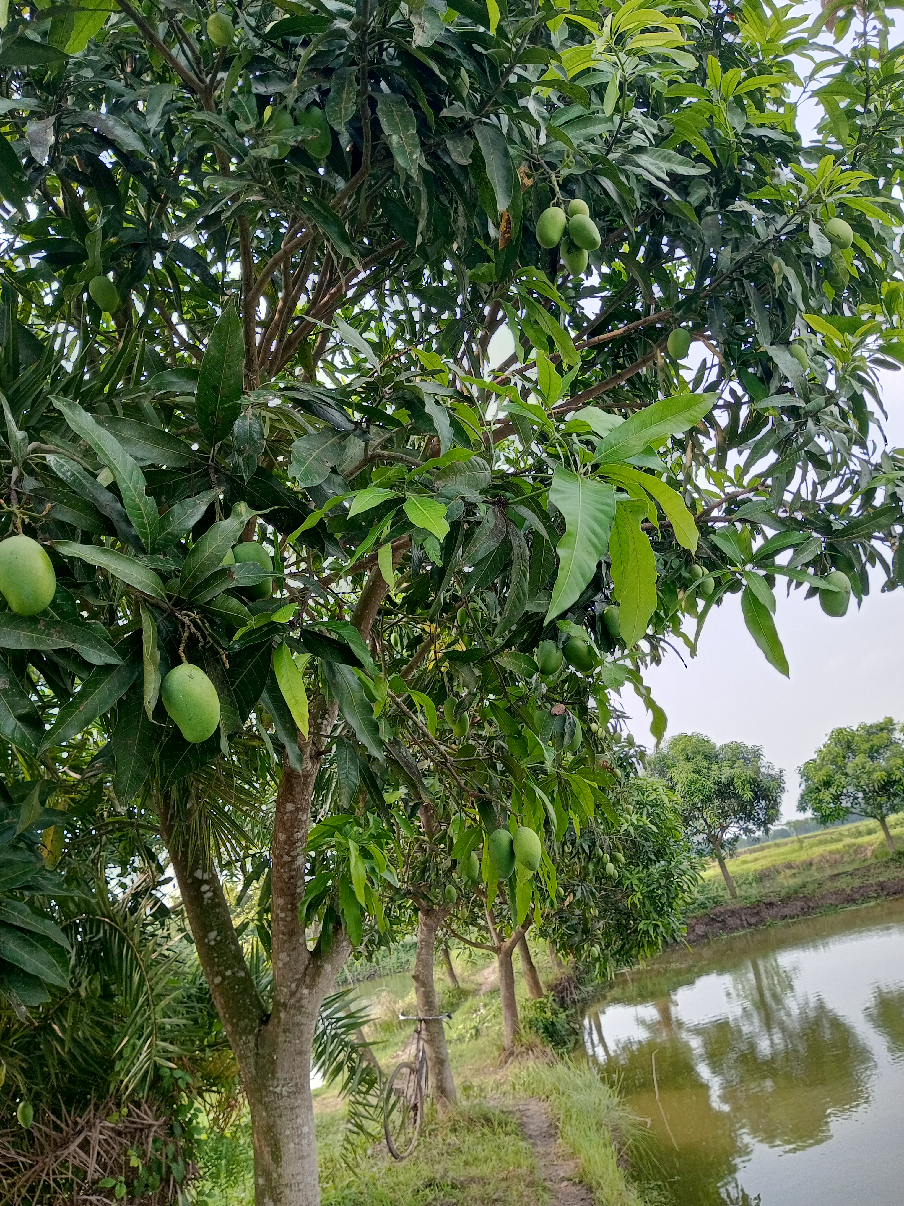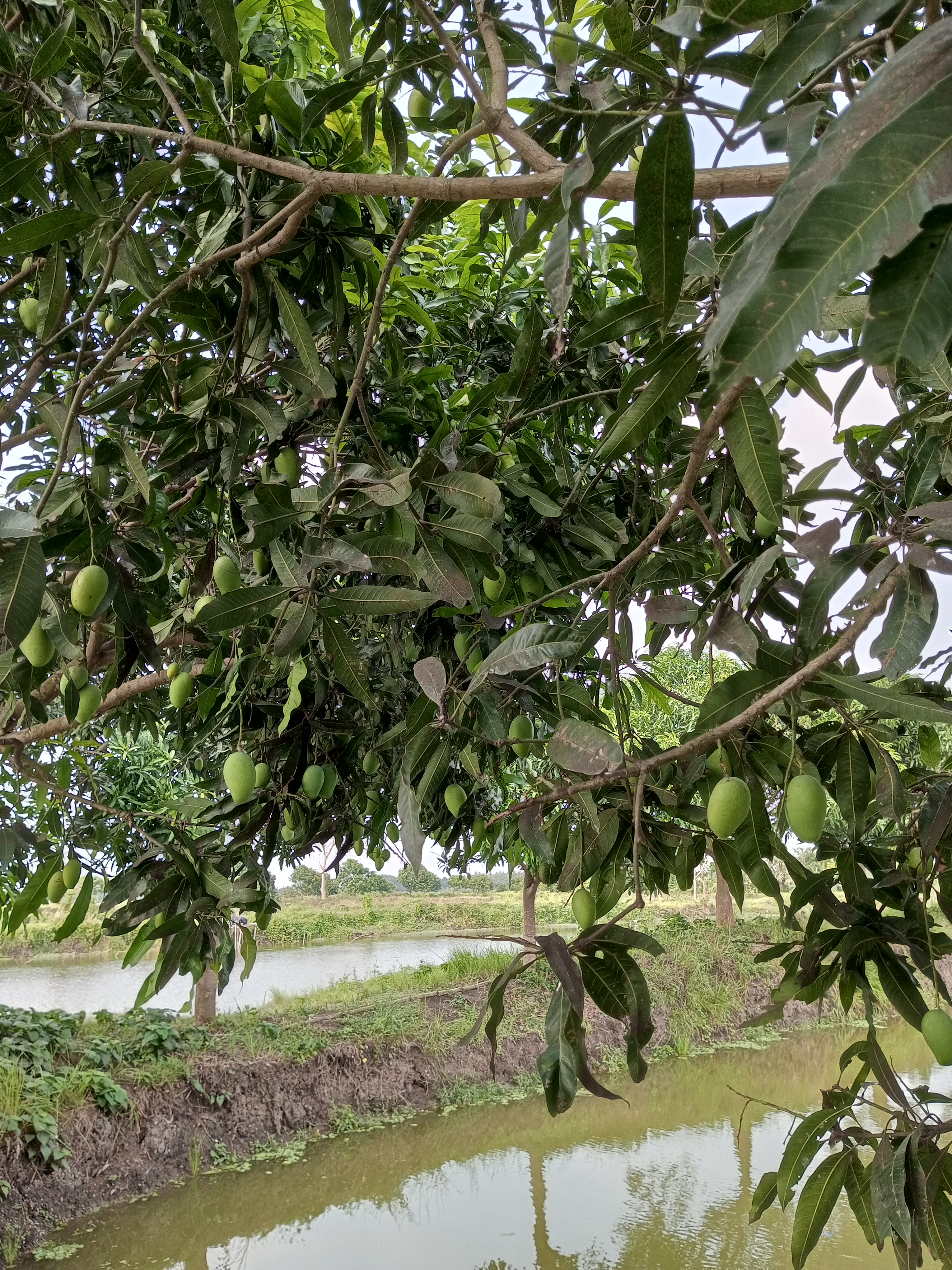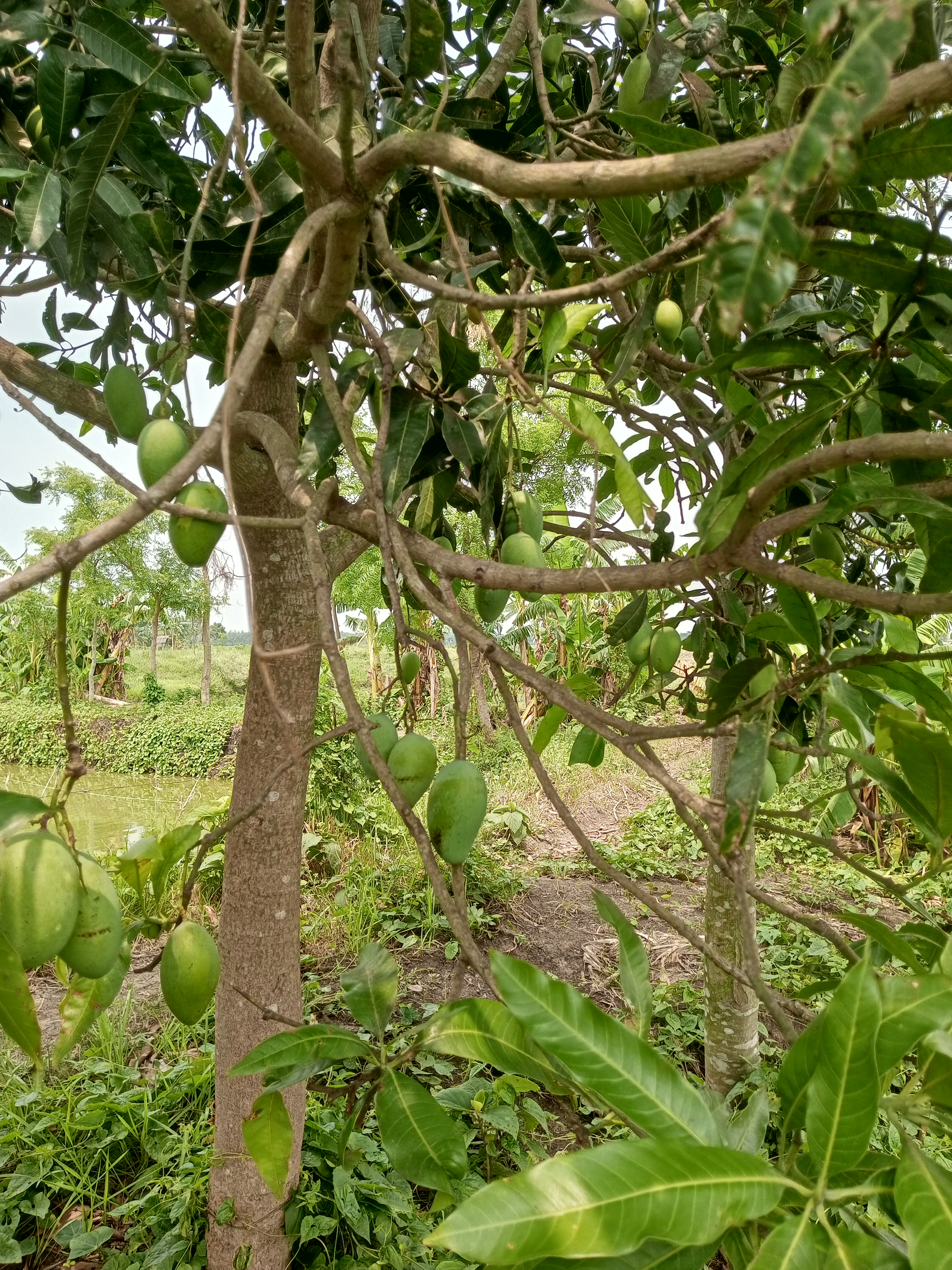 বিশেষ এক কারনে পুকুর বেড়াতে গিয়েছিলাম নিজেদের পুকুর ছেড়ে। পুকুরের ভেড়িতে নানান রকম ফলের গাছ লাগানো হয়ে থাকে। যেমন: আম, জাম, কাঁঠাল, লিচু,নারিকেল ইত্যাদি। তবে এই সমস্ত গাছের মধ্যে আমের গাছ এর পরিমাণটাই বেশি থাকে। Photography device: Infinix hot 11s যখন আম গাছের নিচ দিয়ে চলছিলাম,তখন আম গুলো দেখে খুবই ইচ্ছা জাগলো ফটোগ্রাফি করার জন্য। কারণ ছোট গাছ, আমগুলো ফটোগ্রাফি করা খুবই সহজ হবে।