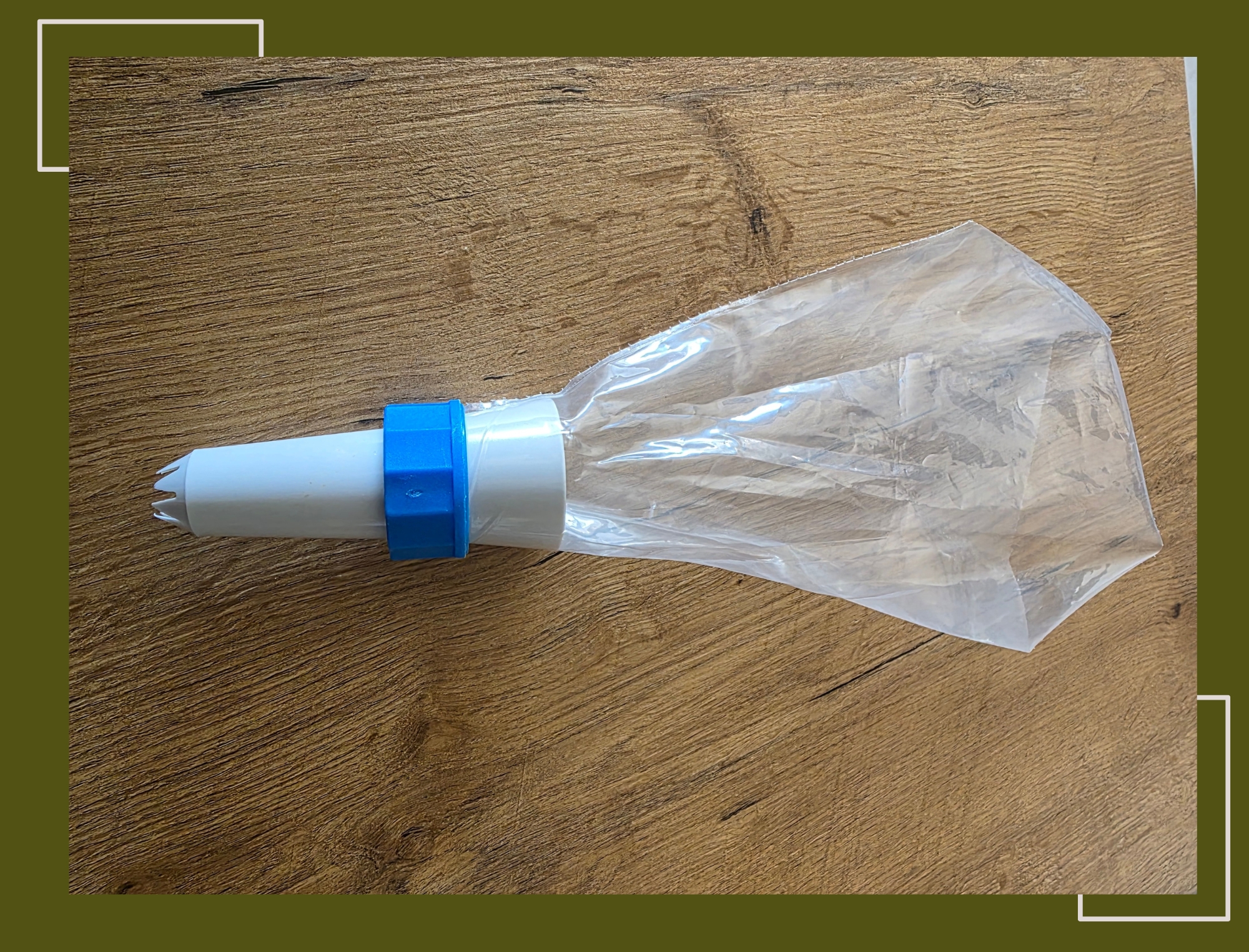 Spuitzak en een gekarteld spuitmondje van ongeveer 1 cm