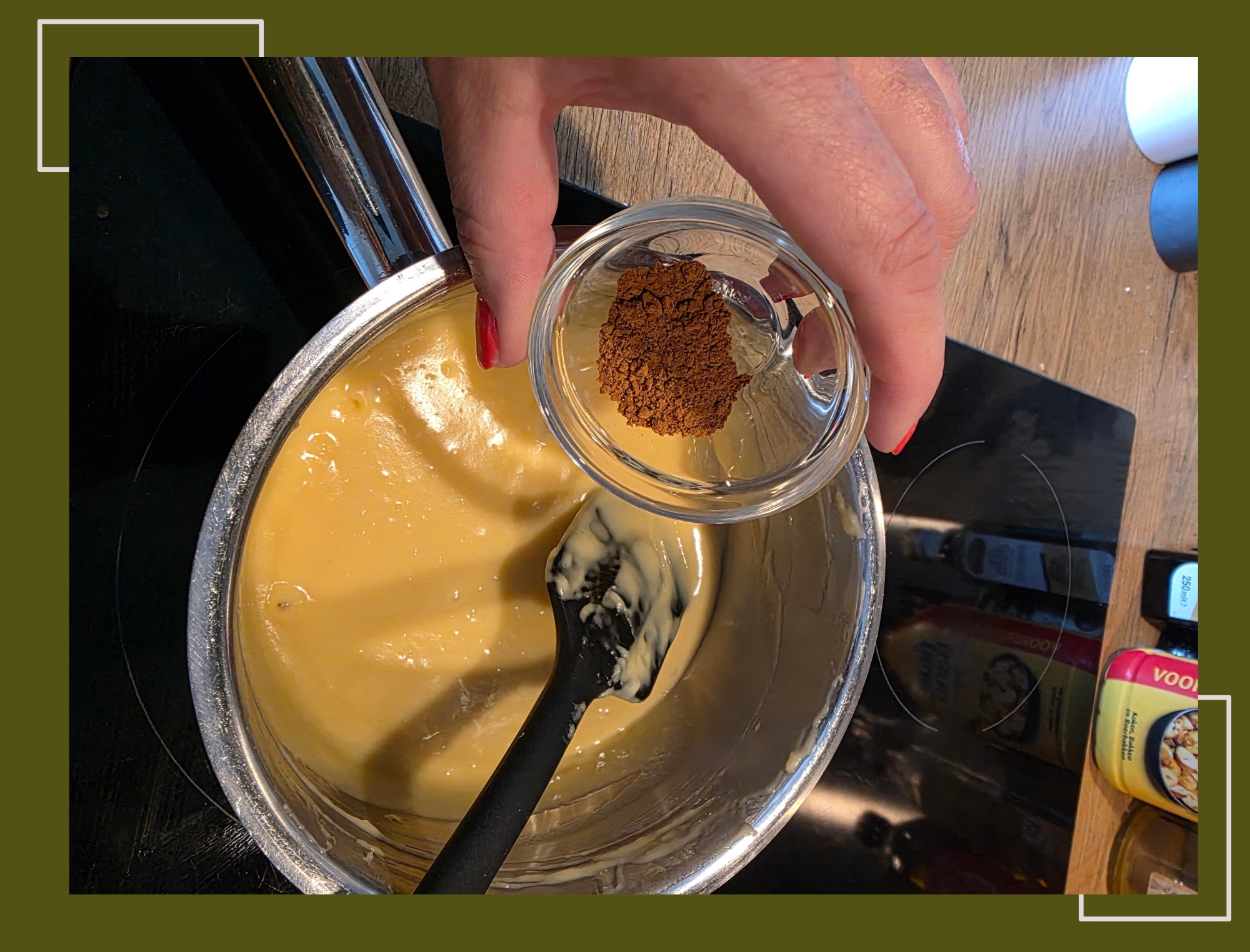 - Als extra stap heb ik wat kaneel toegevoegd i.p.v. onder de suiker.