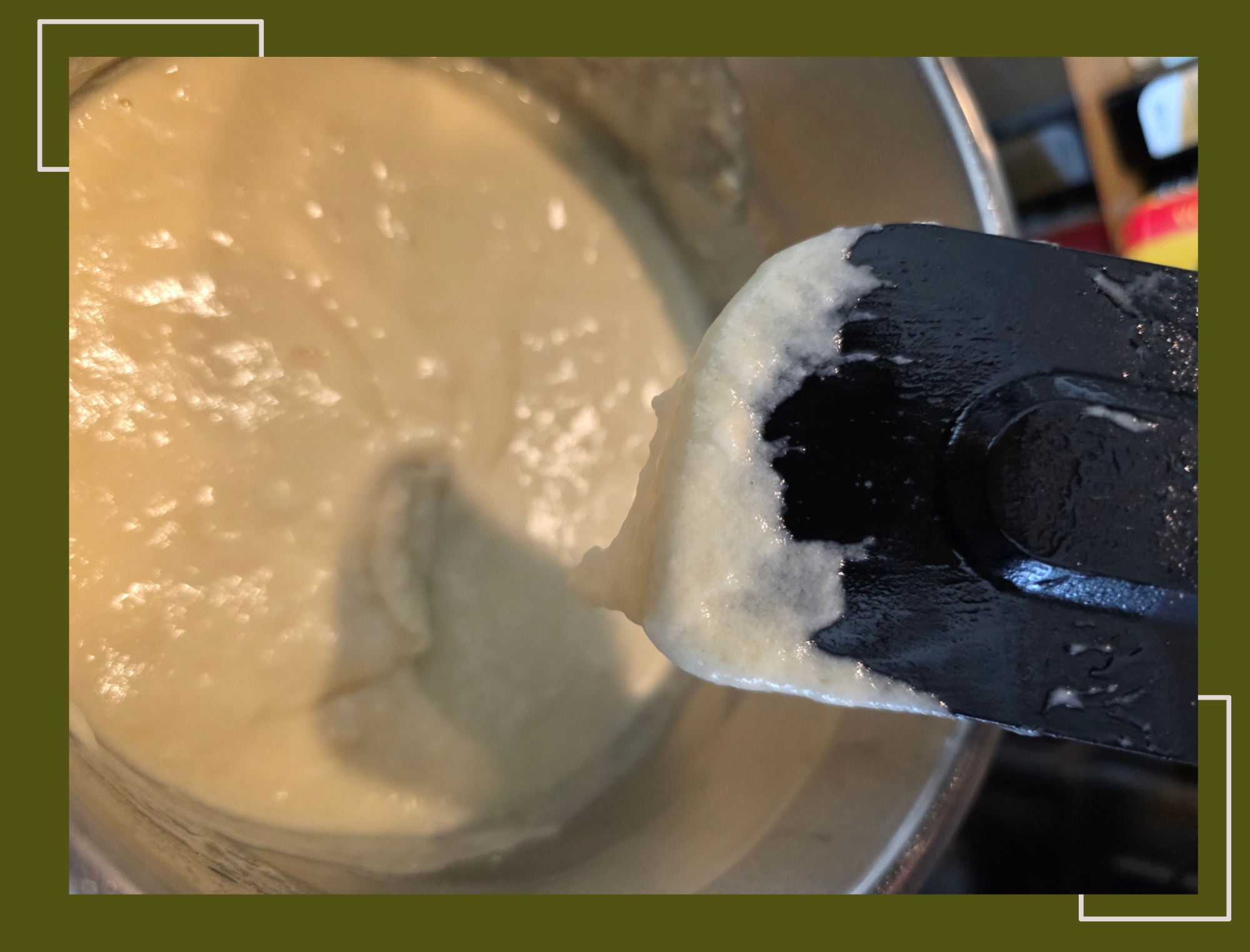 - Omdat ik merkte dat mijn beslag te dun was om in de spuitzak te doen heb ik het nogmaals op het middel hoog vuur gezet en met een spatel geroerd totdat het stevig genoeg was zodat het niet uit mijn spuitzak zou lopen zonder dat ik daar druk op uitoefende.