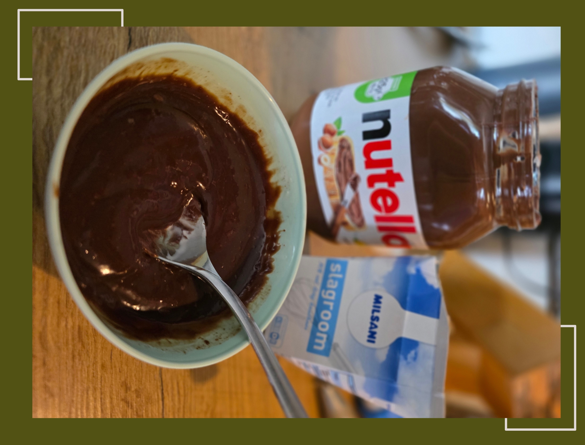 Door 3 eetlepes Nutella en 3 eetlepes slagroom met elkaar te mixen