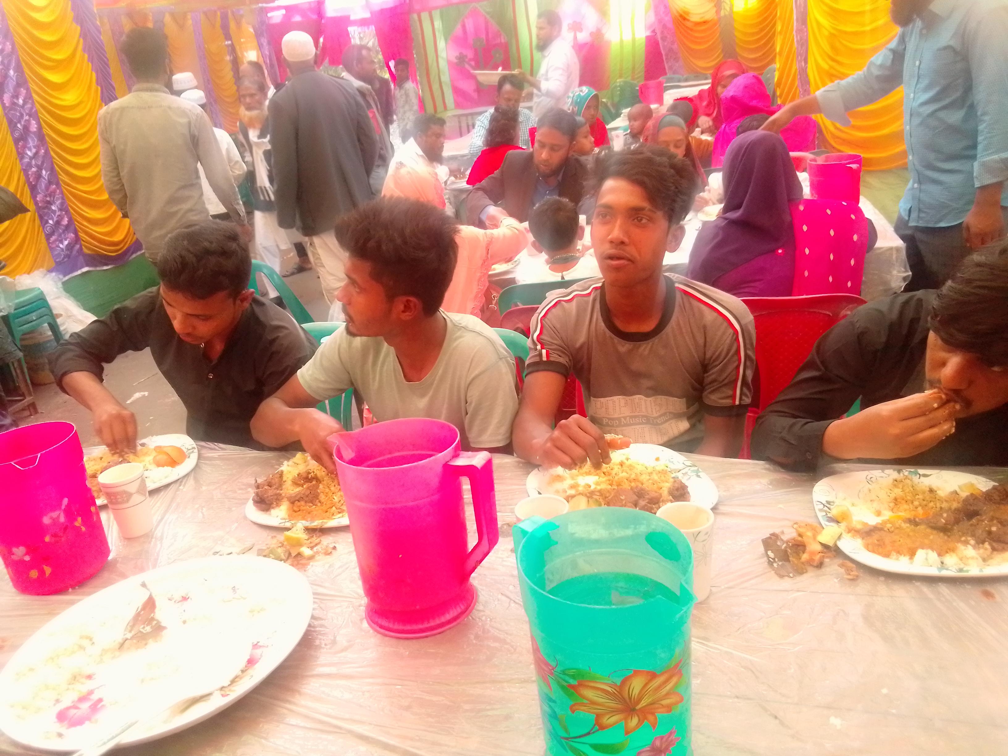 তবে খাইতে বসি আমি ভালো করে খাইতে পারলাম না । সারাদিন পরিবেশন করার কারণে কোনো কিছু খাইতে ইচ্ছা করলো না । তাই একটু খেয়ে সেখান থেকে উঠে আসলাম । |
