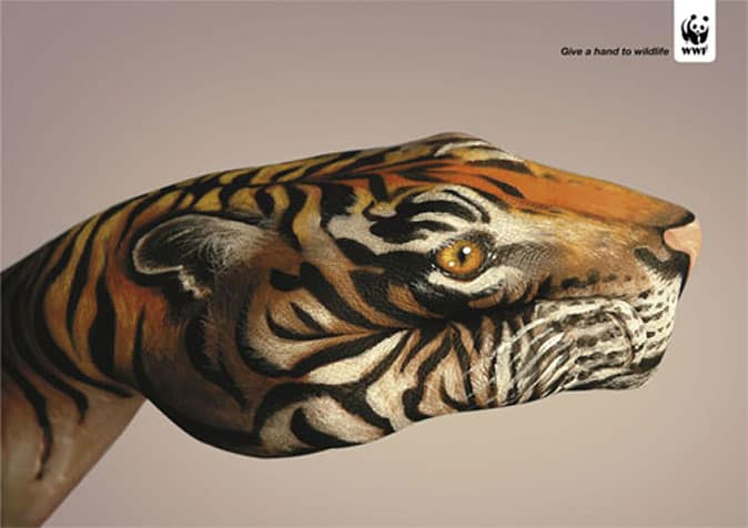 In a classic example of less is more, The WWF ‘Give a Hand to Wildlife’ creative campaign matched clever wordplay and simple, but effective imagery. Able to roll out different incarnations of the ads for various animals including elephants and zebras, allowed this particular marketing campaign to run for a long time frame without being overly saturated.