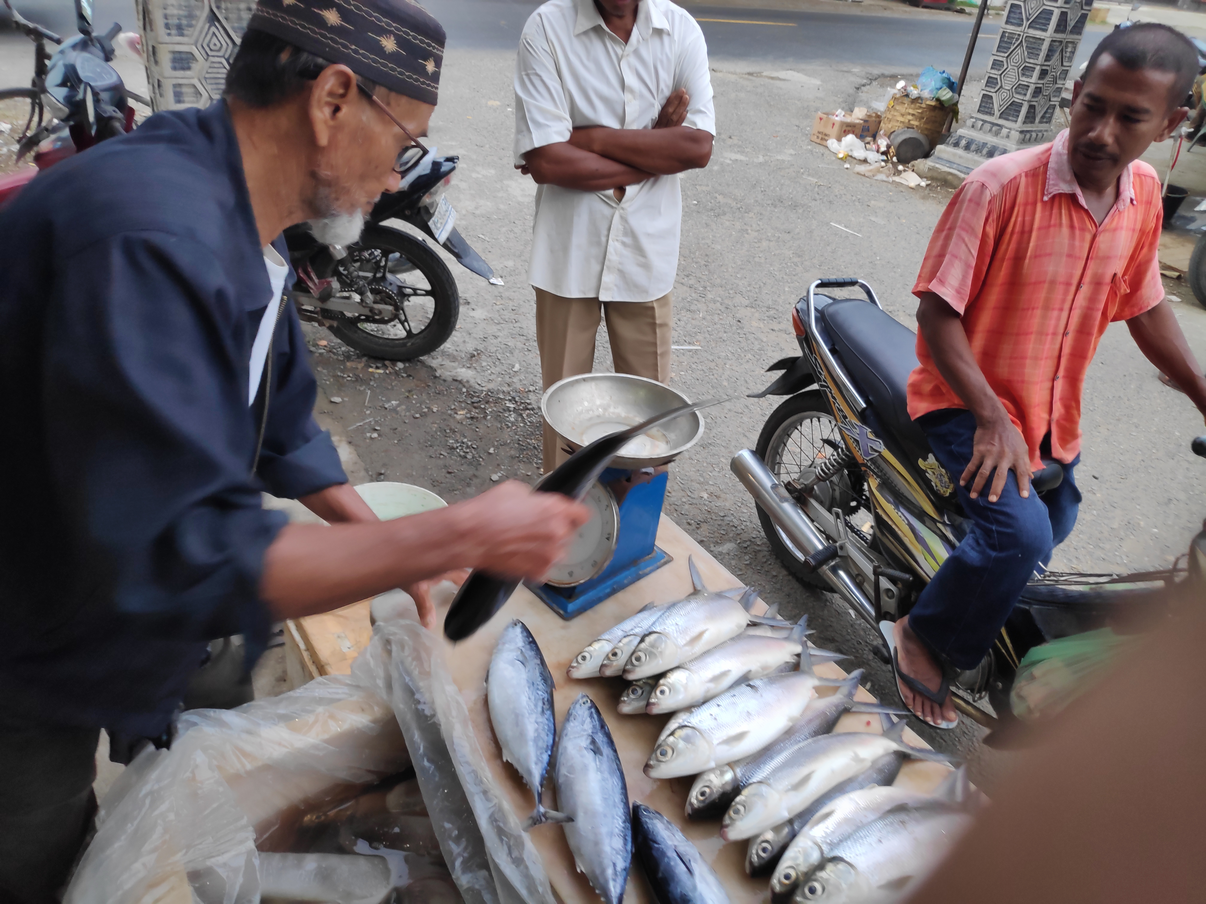 the meat and fish dishes at the dining table are a tradition at eid adha day in my village. Eating milkfish together with the family after the Eid prayer is great moment. to get fresh milkfish, I went to a famous fish trader who sells fresh fish in my home town.