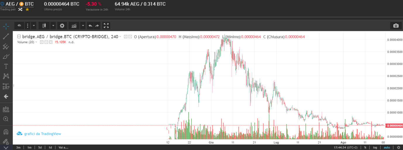 Below Chart AEG/BTC that shows where price is now in the bottom position.