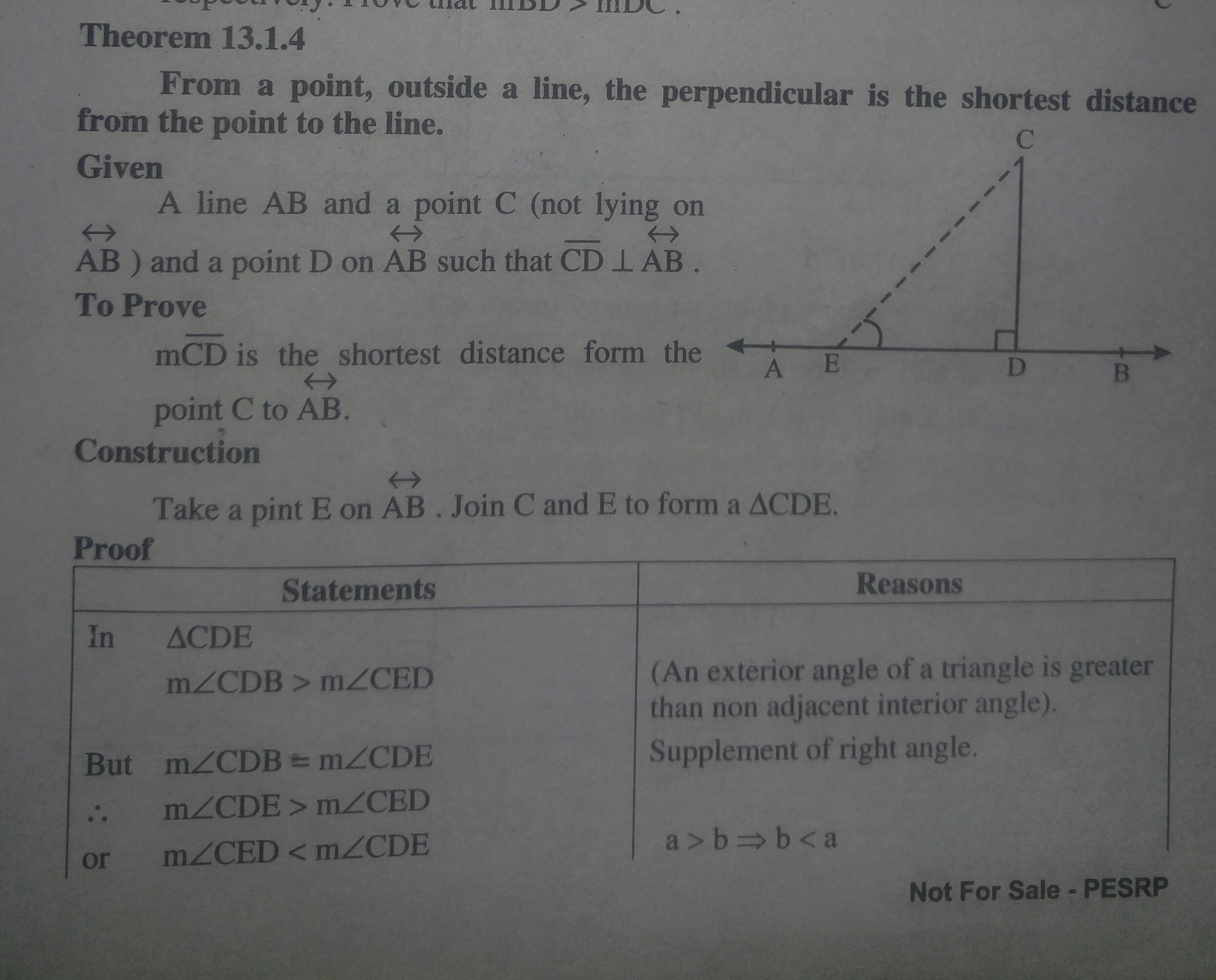 From a point outside a line,the perpendicular is a shortest distance from the point to the line.