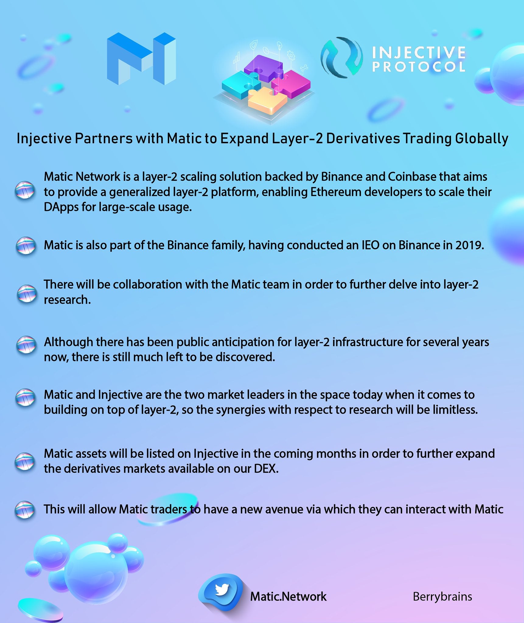 Learn more here: https://medium.com/injective-labs/injective-partners-with-matic-to-expand-layer-2-derivatives-trading-globally-505907f1d3bc