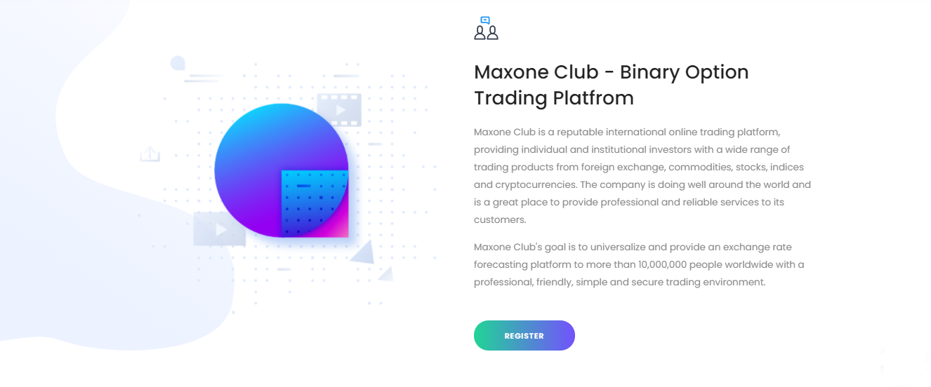 MAXONE.CLUB was founded by a team of financial professionals who share over 15 years of cumulative experience in the global forex market, OTC. A simple and easy alternative to traditional trading, MAXONE.CLUB aims to turn people into traders with a user friendly platform. MAXONE.CLUB offers payouts of up to 95%, one of the highest payouts on the binary options market.