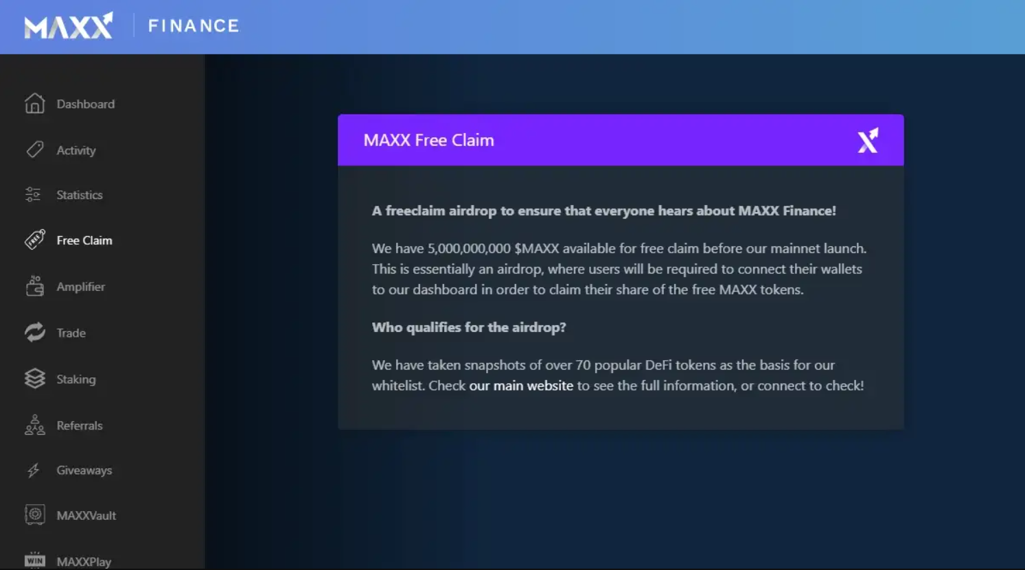 Apart from the Freeclaim, the Liquidity Amplifier is the first chance for users to get their hands on some MAXX tokens.