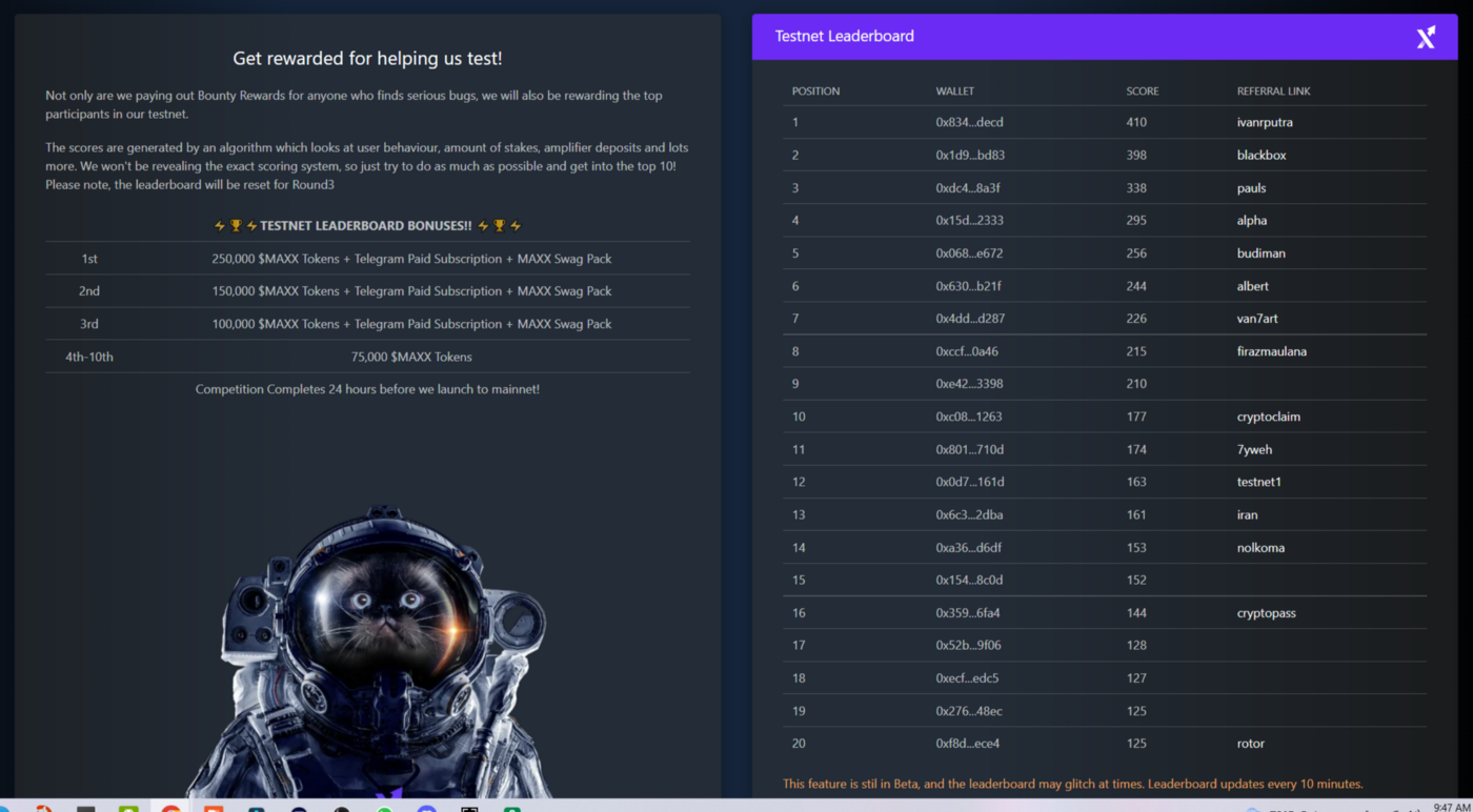 The protocol has been tested meticulously by MAXX team for the past 3 months by a team of internal developers, UI experts, and UX experts. The project has been audited & KYC’d by SolidProof, and the last step of the project was to have it publicly tested. We planned to have only two tests at 336x speed, after which we decided to double the testing rate and have the third round at 672x. All three events have been live-streamed on multiple platforms.