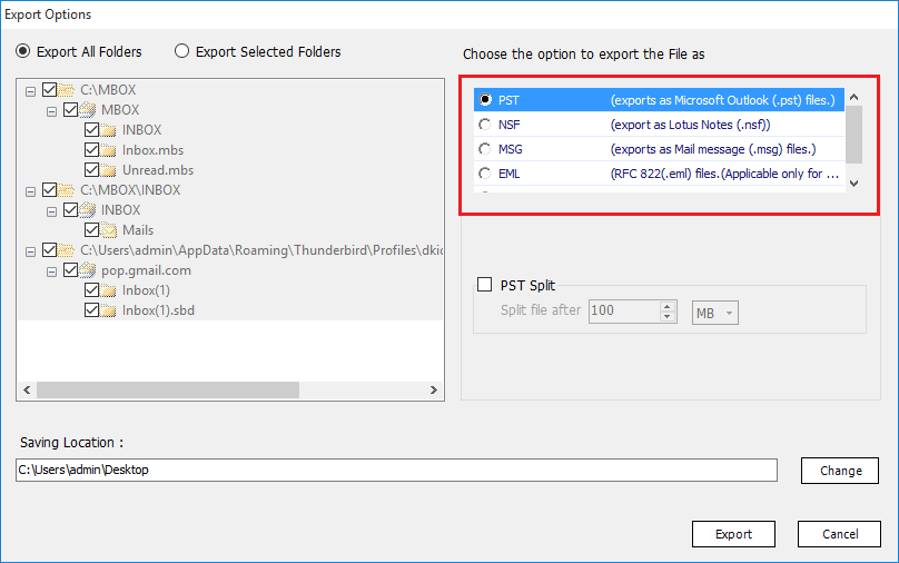 - 모든 MBOX 파일을 단일 PST로 병합하는 기능이 있습니다.