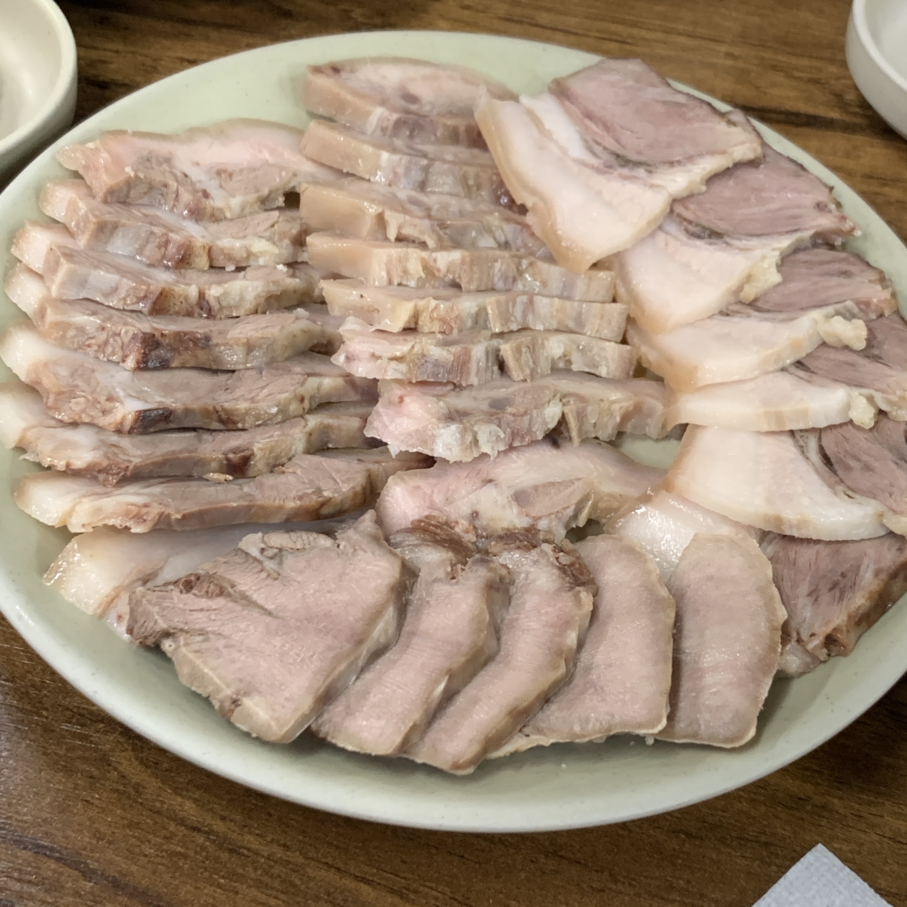 29. 머릿고기jaypisode (29)in #meat • 5 years ago 머릿고기가 참 예쁘게(?) 나왔습니다. 지난 번에 순대국을 올렸는데요. 이번에는 머릿고기입니다. 정갈하게 썰어져 나온 고기가 참 먹음직스럽습니다. 새우젓과 함께 먹으면 그만한 행복이 없습니다. 여러 종류의 머릿고기 중 저는 특히 가운데에 있는 고기 부위를 참 좋아합니다. 특유의 쫄깃한 맛이 매력입니다. 다음에는 막걸리와 함께 한 접시하고 싶네요.