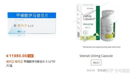 一个是著名的natco的仿制药,0.1gx120片,79美金=540元。便宜的也有道理,就是视觉上价差太大。40多倍价差。