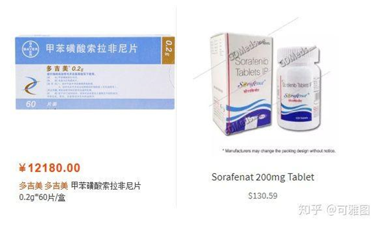 又一,著名的多吉美,国内销售的是0.2gx60片(12180元),印度是0.2gx120片(130美元,约900元)。价差27倍。