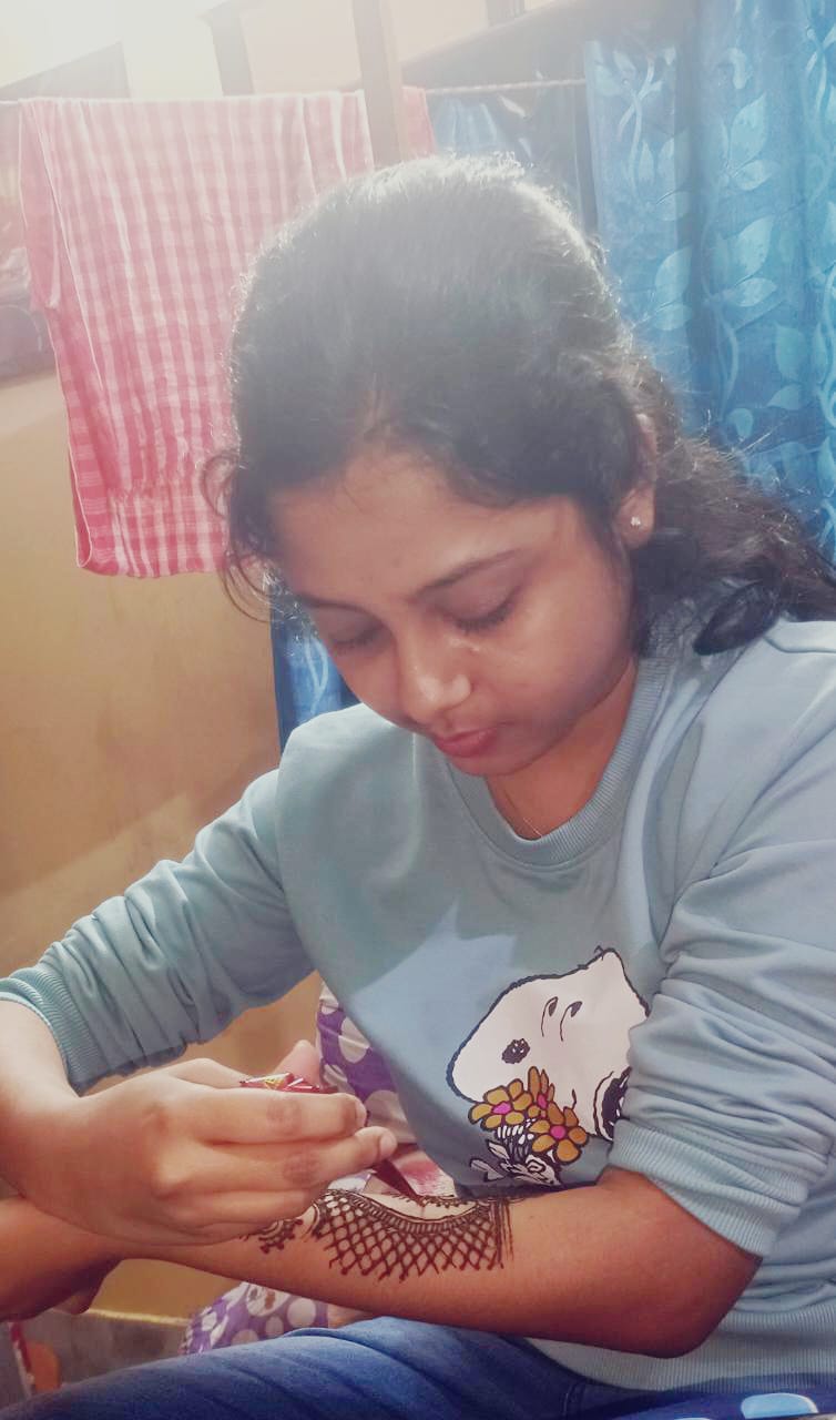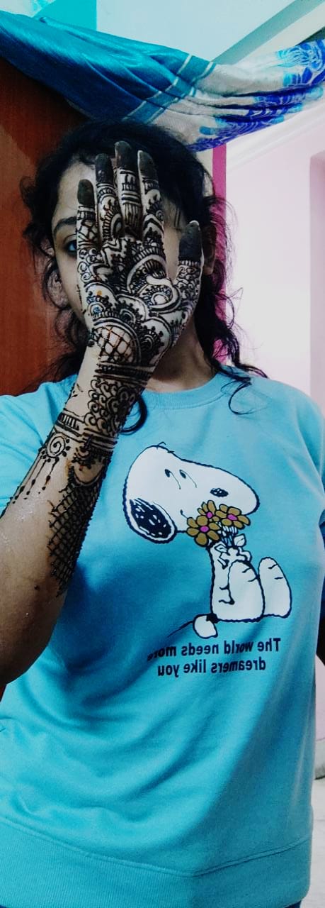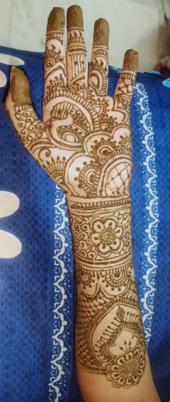 আগে একটা সময় ছিল যখন দুর্গাপূজো আসলেই মেহেন্দি পড়তাম। বিগত দুবছর ধরে মেহেন্দি পড়াই হয় না কিন্তু আর যখন দিদির বিয়ে উপলক্ষে নিজেই যখন নিজের হাতে মেহেন্দি পড়ছিলাম,তখন একটা আলাদাই ভালোলাগা কাজ করছিল।