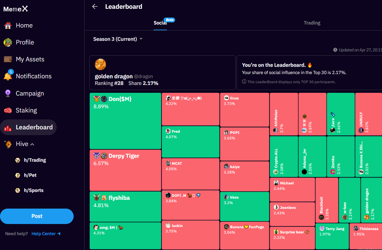 MemeX 플랫폼 활동 (영구적보상)