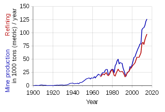 iPhoneに10グラムのコバルトが含まれている場合、一般的な電気自動車では地獄に落ちます。 金属とその生産に対する需要は、過去20年間で劇的に増加しています。 地殻中のコバルトの含有量は0.003%であり、0.1%を超える含有量の鉱石は工業用と見なされます。 コバルトの現在の価格は$ 80 / kgです(比較のために、1kgの銀は$ 800、金は$ 60,000、鉄は-12セントです)。