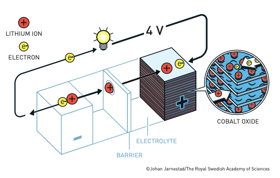 、そして彼らのポケットの中に、多くはさらに10gのコバルトを運びます。 すべてのiPhoneには悪魔がいます。電話の質量の約5%がコバルトです。 リチウムイオン電池のカソードは、コバルト酸リチウム(III)酸化物LiCoO2でできています。 放電-充電サイクル中にリチウムイオンが出入りすると、酸化コバルトは材料の層状の3次元構造を維持し、バッテリーのエネルギー密度と寿命を大幅に延ばします。 カソードは一時的にLix CoOに変化します。ここで、0 <x <1です(コバルトの一部は+4に酸化されます)。