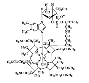 ビタミンB12の構造は他のどのビタミンよりも複雑であり、1956年に英国の女性ドロシークロウフットホジキンによってX線構造分析を使用して最終的に確立されました。 彼女のために、彼女は1964年にノーベル化学賞を受賞しました。