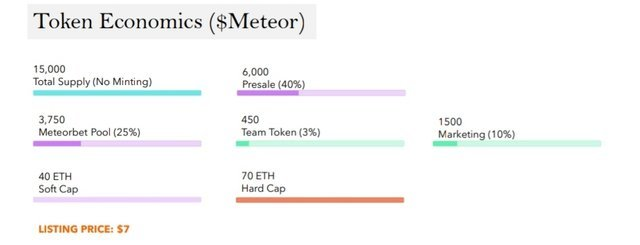 investors will have the opportunity to stake $ Meteor on METEORBET and are entitled to win an amount of $ Meteor as a prize. to expand the prize money and currency staked supported at METEORBET, partnerships will be created with other projects to bring in tokens and their communities.