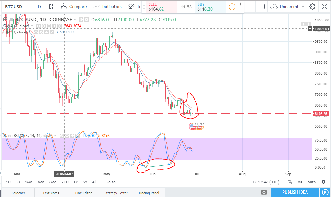b,Stoch RSI is showing bullish sign in long terms (6 to 9 weeks) and possibly Bitcoin touch its all time high.