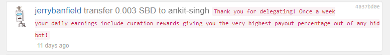 If you Delegate 10SP to @jerrybanfield(best bot), you will receive 0.003 sbd daily,