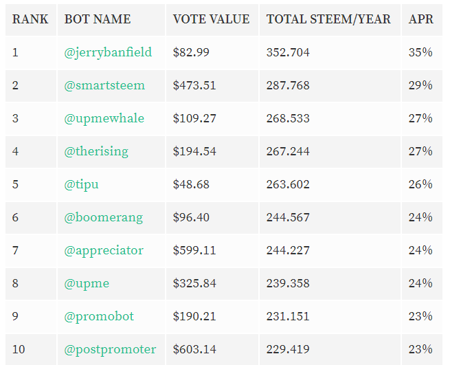 so, you can calculate for other bots as APR will tell you about their yearly returns in steem as shown above.
