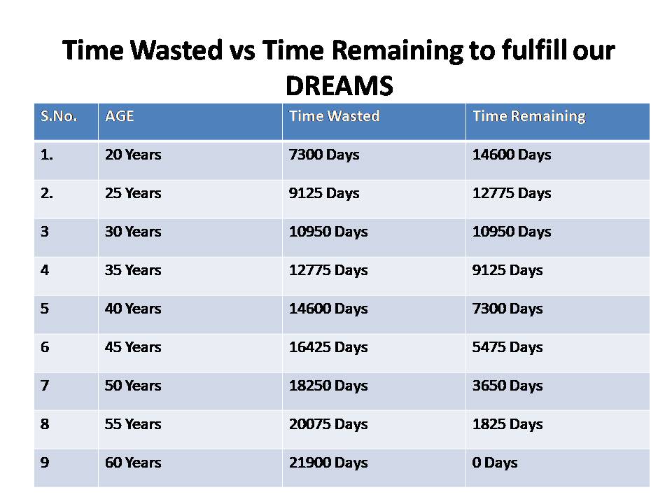 आपकी जो भी उम्र है आप इस इमेज में देखे आपके पास कितना टाइम है अपने सपनो को पूरा करने के लिए