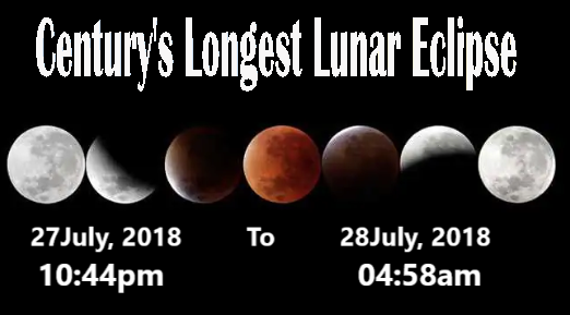 Century's longest lunar eclipse will be visible tonight across the world. In India, lunar eclipse timings will be 10:44 pm tonight and it will end at 4:58 am on July 28. The total lunar eclipse, in which the moon will appear red, also called Blood Moon, will be visible from 1 am to 2:43 am tonight. The century's longest total lunar eclipse duration will be 103 minutes or 1 hour 43 minutes long. This period of complete lunar eclipse -- known as "totality", is the time when the moon appears darkest or reddish in colour. To witness this rare celestial phenomenon, set your alarms for 1 am to see the moon 'blush' red.