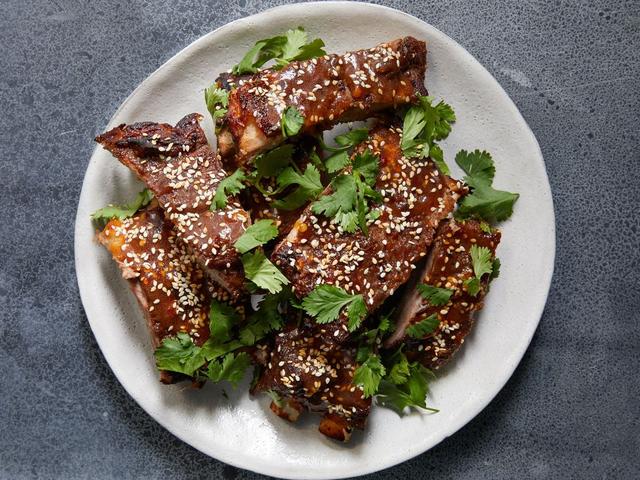 If you own an Instant Pot, you’ll want to try the below recipe. We give the classic baby back rib formula an Asian-inspired twist by rubbing the ribs with warming spices like Chinese five spice powder and ground ginger. The spicy-sweet sauce boasts rice vinegar for tang (instead of traditional apple cider vinegar), plus honey and mirin for sweetness, and chili-garlic sauce for a touch of heat.