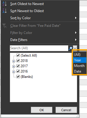 Click the + plus sign beside 2018, 2017, and 2016, then uncheck March, April, May, and Blanks then click OK