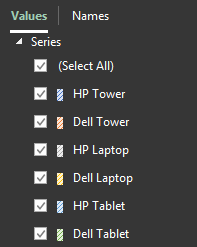 Working with our sales dataset, let’s say we want to view sales for only the HP Towers products over the six-month period.