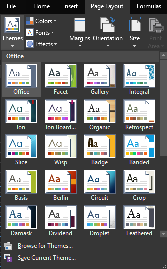 For additional color schemes for your chart, you can navigate to Page Layout tab > Themes and browse and scan through the options.