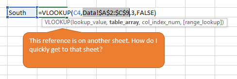 There are many occasions when I have to navigate within my workbook to find a cell or range that is on another worksheet and the following tip is saving me a lot of time.