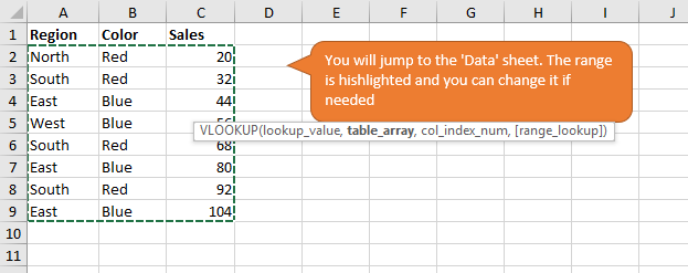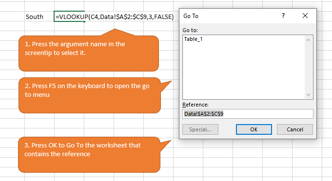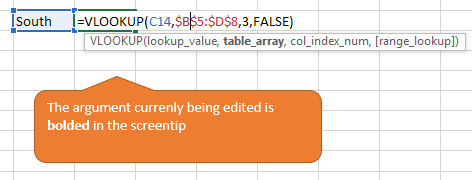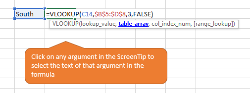 I can click “table_array” in the ScreenTip box with my mouse and the corresponding part in the formula will be selected. It is much quicker in comparison trying to select the text using the mouse cursor.