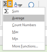 - By selecting the drop-down arrow to the right of the AutoSum button gives you options to create formulas with other functions such as Average, Count, Min, Max.