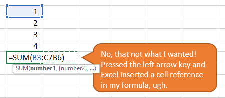 I remember dealing with the frustrating moments and wondering why is that while editing a formula and moving the cursor left/right, instead of the navigating the courser in the formula section, a new cell reference is inserted in the formula?
