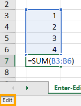 Edit Mode – Excels default mode. In this environment, we can use the left and right arrow keys to navigate the cursor within the formula and make changes.