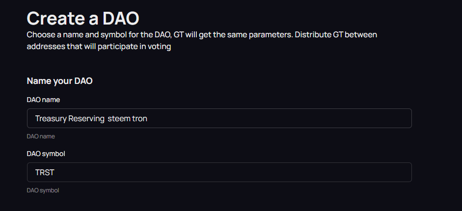 다오 이름을 적으면 심볼은 자동으로 만들어집니다.