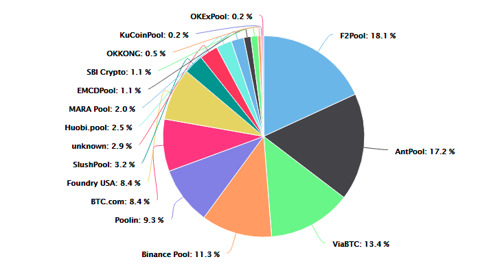 F2Pool is holding its leadership despite China’s recent crackdown on Bitcoin pools that caused a mass migration of mining facilities from the country. Launched in 2013, this pool boasts a 25.7 EH/s hashrate which allows it to control 18% of the overall Bitcoin network 141.7 EH/s hashrate.